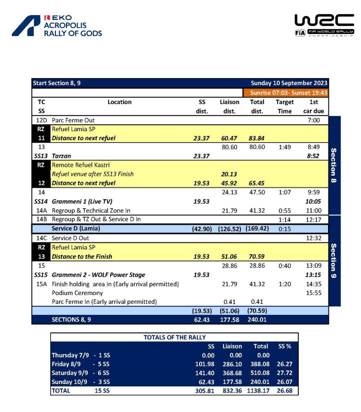 Η απαιτητικότερη ημέρα του αγώνα, με συνολικό μήκος ε.δ. 141,40 χλμ., προμηνύεται το Σάββατο, με τη διεξαγωγή από δύο φορές των “Παύλιανη”, “Καρούτες” και “Ελευθεροχώρι”. Την Κυριακή, με τον “Ταρζάν” να έχει πλέον εδραιώσει τη θέση του στη σύγχρονη διαδρομή του αγώνα, αξίζει να αναφερθεί η προσθήκη της ε.δ. “Γραμμένη” στο ωράριο του Ράλι Ακρόπολις 2023. Μάλιστα, η ειδική διαδρομή που τελευταία φορά ενσωματώθηκε στον αγώνα το 2005 θα είναι και η Power Stage αυτήν τη χρονιά.