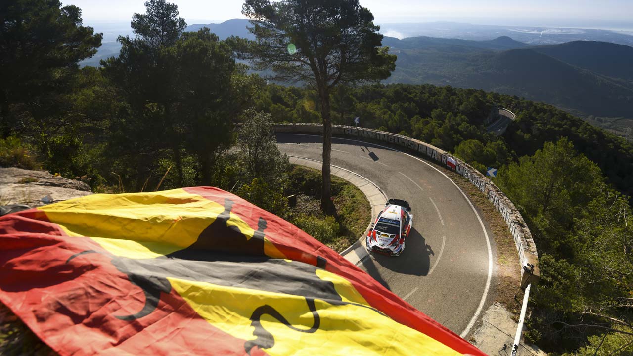 Σε ασφάλτινες επιφάνειες πλέον, μετά τις 7 Ειδικές Διαδρομές, τα μάτια όλων ήταν στραμμένα στο τι θα κάνουν οι Tanak–Jarveoja με το Toyota Yaris WRC, προκειμένου να ανέβουν θέσεις και να καθαρίσουν την μάχη του τίτλου, αφού μία θέση τερματισμού πίσω από τους Neuville–Gilsoul, θα ήταν αρκετή να εξασφαλίσουν τον τίτλο. Το βελγικό πλήρωμα της Hyundai κέρδισε δύο Ειδικές και με συνδυασμό αποτελεσμάτων ανέβηκε στην πρώτη θέση. Ο Loeb υποχώρησε, ο Sordo πέρασε στην δεύτερη θέση και μόλις στην τελευταία υπερειδική στην παραλία του Salou, ο Tanak πέρασε τον Loeb και ανέβηκε στην τρίτη θέση.