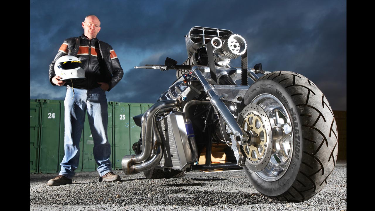 Πώς αλλιώς, αν όχι λόγω παραισθήσεων, θα μπορούσε κάποιος να εξηγήσει την απόφαση του Nick Argyle να χρησιμοποιήσει το μοτέρ ενός monster truck για να φτιάξει μοτοσυκλέτα; Και, μάλιστα, να υπερηφανεύεται ότι σε αυτή την ιδέα τον ώθησε η σύζυγός του, η οποία του συνέστησε να μην αναζητήσει άλλο κινητήρα, αλλά να αξιοποιήσει τον V8 των 8.193 κ.εκ. που είχε ξεμείνει στην αποθήκη τους, στο Κότσγουολντς της Βρετανίας.