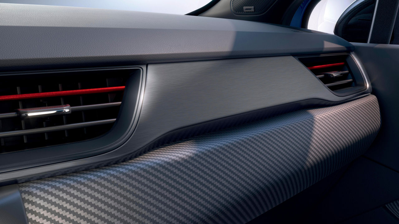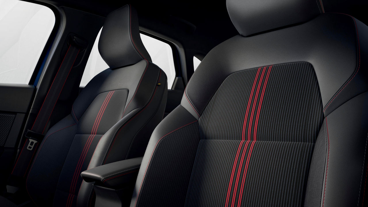 Στο εσωτερικό η σπορ ατμόσφαιρα ενισχύεται από τη δερμάτινη διάτρητη επένδυση του τιμονιού και από τις κόκκινες ραφές που βλέπουμε τόσο σε αυτό όσο και στις υπόλοιπες επενδύσεις τις καμπίνας. Τα αλουμινένια μαρσπιέ στις πόρτες φέρουν επίσης το σήμα της νέας έκδοσης, ενώ σας χρώμα το κόκκινο κάνει την εμφάνιση του στις επενδύσεις των καθισμάτων αλλά και στους αεραγωγούς του ταμπλό, το οποίο στην πλευρά του συνοδηγού φέρει και φάσα με carbon look.
