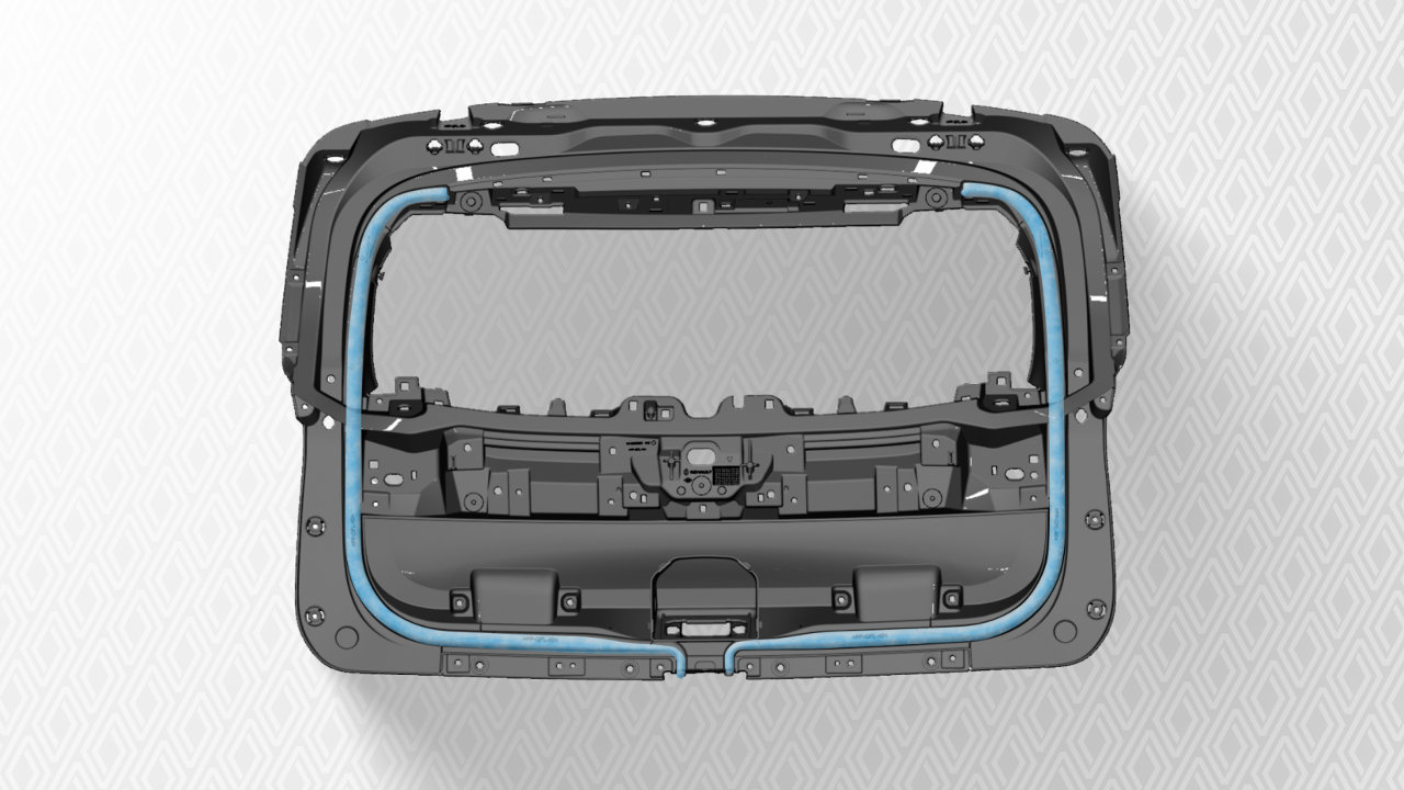 Οι πλαστικές πόρτες του χώρου των αποσκευών χρησιμοποιούνται εδώ και πολλά χρόνια στα μοντέλα της Renault, συμβάλλοντας στη μείωση του συνολικού βάρους του αυτοκινήτου, ενώ, παράλληλα, έδωσαν τη δυνατότητα στους σχεδιαστές να ενσωματώσουν τα πίσω φώτα σε όλο το πλάτος της πίσω πόρτας.