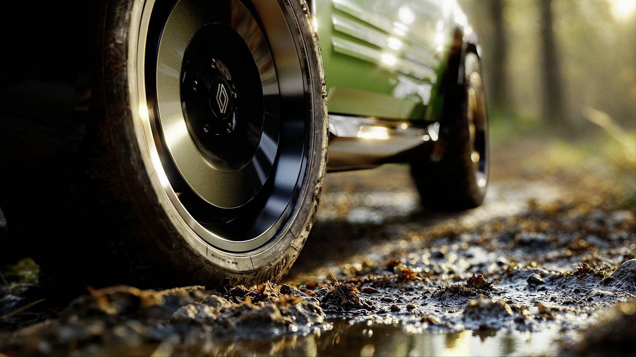Η απόσταση από το έδαφος του Renault 4 Savane 4×4 Concept είναι κατά 15 χλστ. μεγαλύτερη σε σχέση με το επιβατικό Renault 4 E-Tech electric. Διαθέτει ειδικά ελαστικά Goodyear UltraGrip Performance+ διαστάσεων 225/55 με ειδικές ζάντες “Savane”, με διάμετρο που παραμένει στις 18’’, ενώ τα εμπρός και πίσω μετατρόχια είναι κατά 10 χλστ. φαρδύτερα.