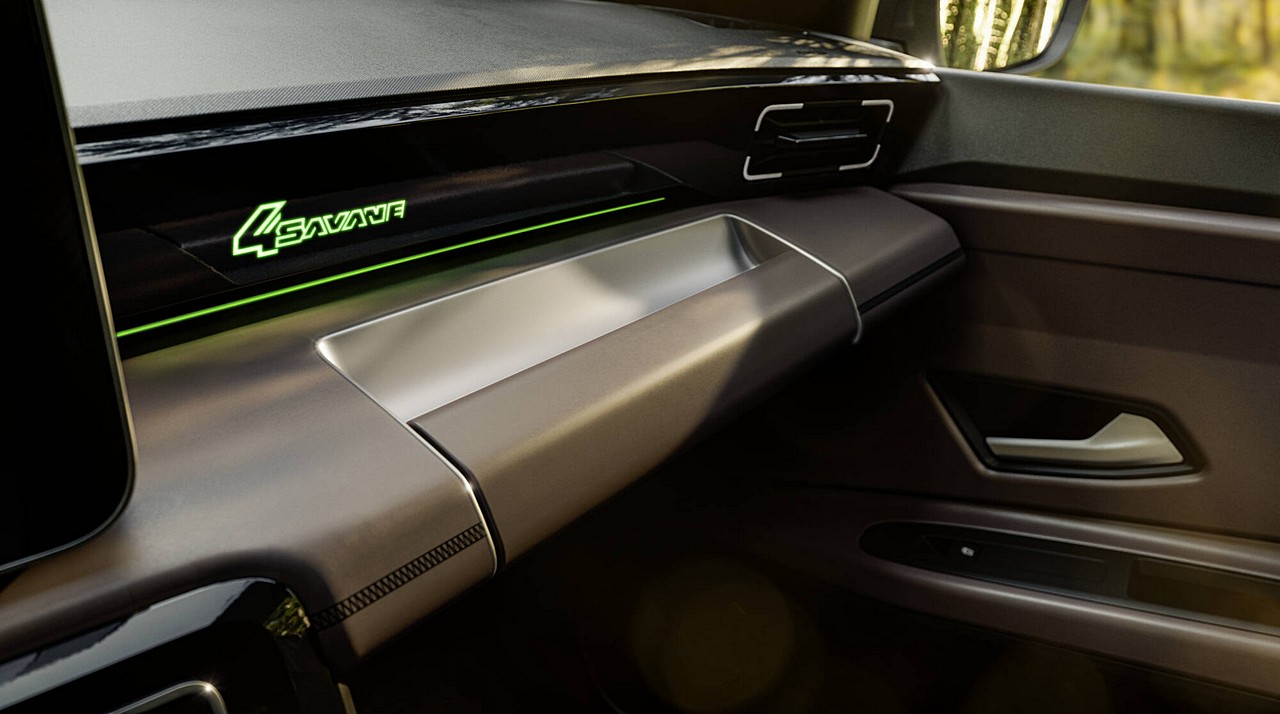 Το ταμπλό είναι και αυτό επενδυμένο με ύφασμα TEP, σε απόχρωση Deep Brown. Οι ραφές στο πάνω μέρος, εκτείνονται σε ολόκληρο το πλάτος του, φτάνοντας μέχρι τα πάνελ των θυρών. Ένα φωτιζόμενο λογότυπο 4Savane, στη πρόσοψη του ταμπλό, αποτελεί την υπογραφή του πρωτότυπου.
