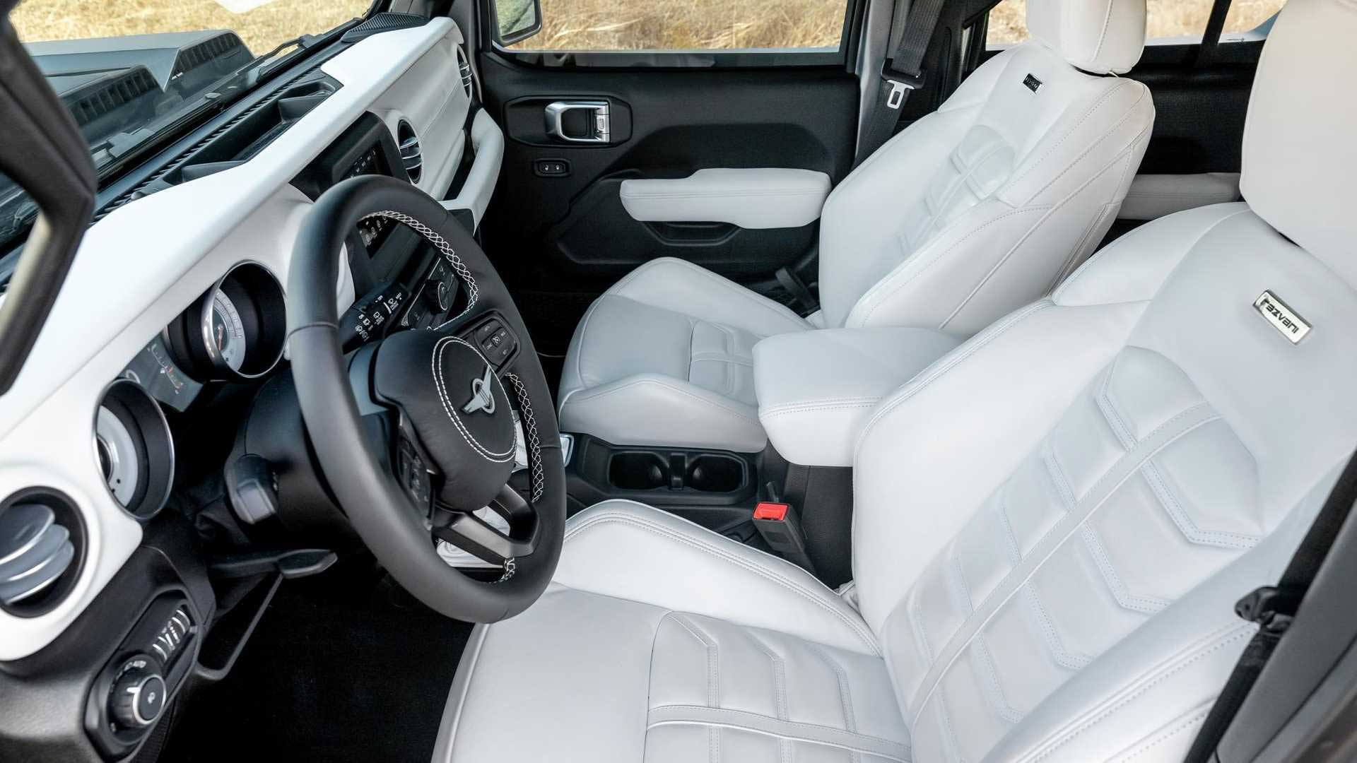 Όσον αφορά το εσωτερικό του, αυτό θα λέγαμε πως αποτελεί μία πιο… ποιοτική εκδοχή του εσωτερικού του Jeep Wrangler. Όχι πως το αμερικάνικο μοντέλο δεν είναι ποιοτικό. Κάθε άλλο… Απλώς στην περίπτωση του Rezvani Tank υπάρχουν παντού δερμάτινες επενδύσεις, ενώ ο εξοπλισμός είναι υπερπλούσιος. Φυσικά, όντας εναρμονισμένο με το πνεύμα της εποχής δεν θα μπορούσε να μην έχει και οθόνη αφής για το σύστημα πολυμέσων με πολλές κορυφαίες λειτουργίες και συνδεσιμότητα. Μάλιστα στην έκδοση Military Edition υπάρχει και θερμική κάμερα νυχτερινής όρασης, θωρακισμένα πάνελ, αλεξίσφαιρα τζάμια και ελαστικά run-flat.