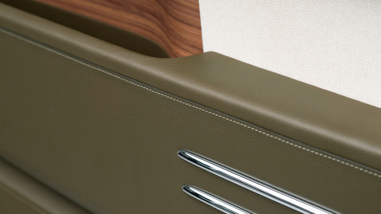 Οι δύο τόνων βαφή είναι μόνο ένα από τα αποκλειστικά στοιχεία της Phantom Orib που αντλούν την έμπνευση τους από τα ιαπωνικά κεραμικά είδη. Σχεδόν ολόκληρη η καμπίνα έχει ντυθεί με αντίστοιχων αποχρώσεων δέρματα που προέρχονται από τον Hermes, ακόμη και σε σημεία που δεν έχουμε συνηθίσει να το βλέπουμε όπως για παράδειγμα είναι τα χειριστήρια στο τιμόνι. Ειδική επεξεργασία και “γραφικά” φέρουν και οι ξύλινες επενδύσεις από καρυδιά που βλέπουμε τόσο στο ταμπλό όσο και στις πόρτες αλλά και την κεντρική κονσόλα, ενώ τα πατάκια είναι ολόμαλλα.