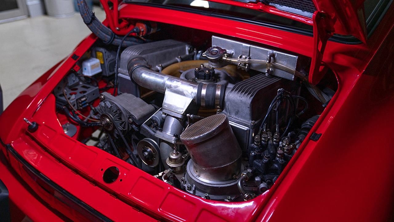 Κάτω από το καπό της βρίσκεται ένας υπερτροφοδοτούμενος επίπεδος κινητήρας χωρητικότητας 3 λίτρων, ο οποίος είναι αερόψυκτος. Αποδίδει 485 ίππους στις 7.000 σ.α.λ. και, σε συνδυασμό με το χαμηλό βάρος, πετυχαίνει εντυπωσιακές για την εποχή επιδόσεις. Τα 0-100 χλμ/ώρα έρχονται σε περίπου 4 δευτερόλεπτα και η βελόνα του ταχύμετρου αγγίζει τα 300 χλμ/ώρα.