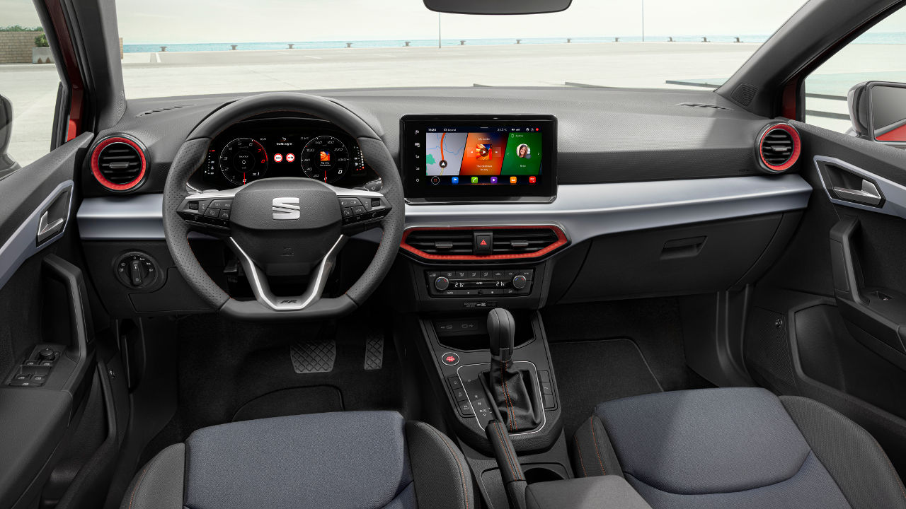 Οι μεγάλες αλλαγές για το μικρό best seller της ισπανικής εταιρίας παρατηρούνται στο εσωτερικό του με το ταμπλό να έχει ανασχεδιαστεί πλήρως, ενώ πλέον κατασκευάζεται από νέα και πιο ποιοτικά μαλακά υλικά. Οι αεραγωγοί έχουν εντελώς διαφορετικό σχήμα με την μεγάλη αλλαγή να αφορά την τοποθέτηση της οθόνης αφής του multimedia συστήματος σημαντικά ψηλότερα στο κέντρο του ταμπλό. Η νέα οθόνη έχει παράλληλα μεγαλώσει σε μέγεθος με τη στάνταρ να φτάνει στις 8,25 ίντσες και την προαιρετική στις 9,2 ίντσες. Η πληροφορίες φτάνουν στα μάτια του οδηγού 100% ψηφιακά αφού μπροστά του έχει μια οθόνη 10,25 ιντσών. Νέο είναι και το τριάκτινο πολυλειτουργικό τιμόνι που καλύπτει τη στεφάνη του με δέρμα nappa.