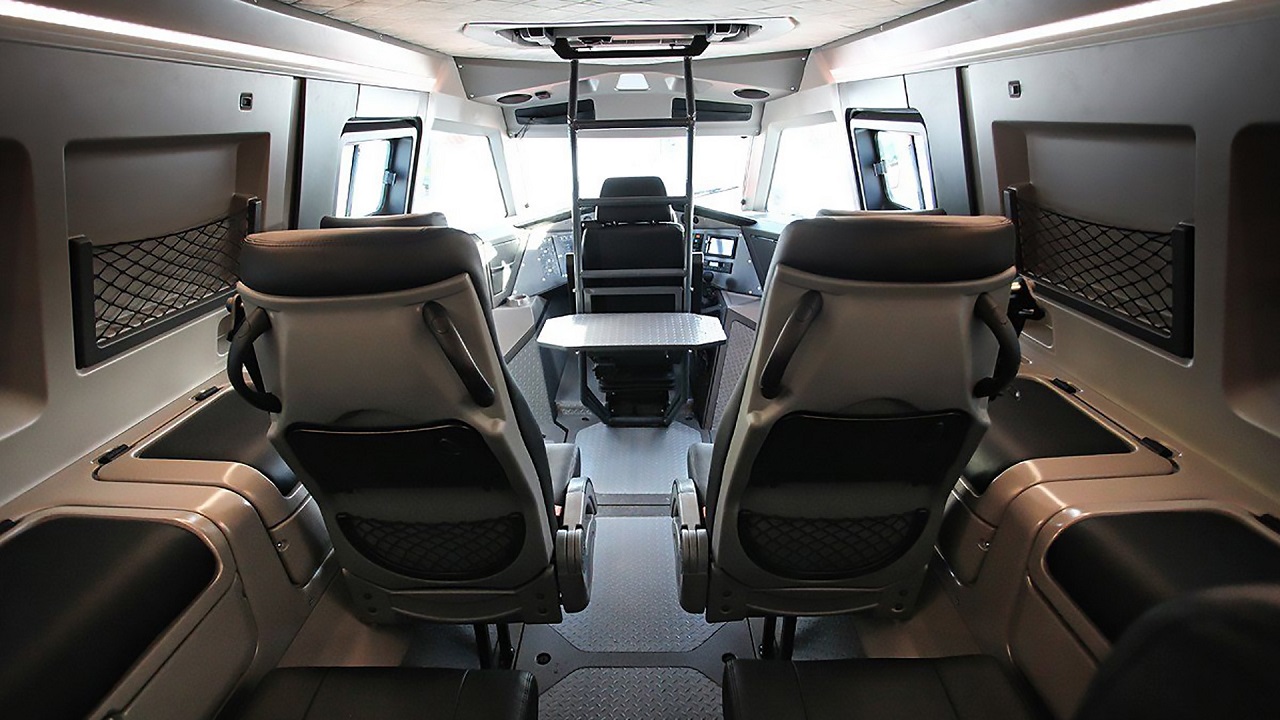 Τα τεράστια “off-road” ελαστικά του δίνουν δυνατότητα να κινείται σε ρηχά νερά. Όπως θα δείτε στο video, όμως, υπάρχει και μία προπέλα που είναι ικανή να το ρίξει και στα πιο “βαθιά”. Κάτω από το καπό θα περιμέναμε να βρίσκεται κάποιος κινητήρας αντίστοιχου βεληνεκούς. Αλλά η εταιρεία Avtros επέλεξε έναν πετρελαιοκινητήρα της Iveco χωρητικότητας 3 λίτρων και απόδοσης μόλις 170 ίππων. Έτσι, η τελική ταχύτητα περιορίζεται στα 71 χλμ./ώρα.
