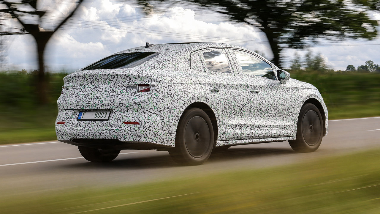 Το Enyaq Coupe iV, το δεύτερο μοντέλο της τσέχικης εταιρίας που αξιοποιεί την MEB πλατφόρμα του ομίλου VW, έκανε την εμφάνιση του αρχικά με βαρύ καμουφλάζ, με τη νέα έκδοση να κάνει επίσημα το ντεμπούτο της τις επόμενες ημέρες. Είναι μόλις τέσσερα χιλιοστά μακρύτερο και ένα χιλιοστό ψηλότερο σε σχέση με το στάνταρ Enyaq iV, με μήκος και ύψος που φτάνουν στα 4.653 και 1.617 χλστ. αντίστοιχα, ενώ το πλάτος και το μεταξόνιο του Coupe Enyaq παραμένουν στα 1.879 κι 2.765 χλστ. αντίστοιχα. Παράλληλα το νέο και πιο αεροδυναμικό σχήμα κατεβάζει περαιτέρω τον συντελεστή οπισθέλκουσας, από τα 0,257 στα 0,247, με το πορτμπαγκάζ να στέκεται στο ύψος των περιστάσεων με 570 λίτρα χωρητικότητα.