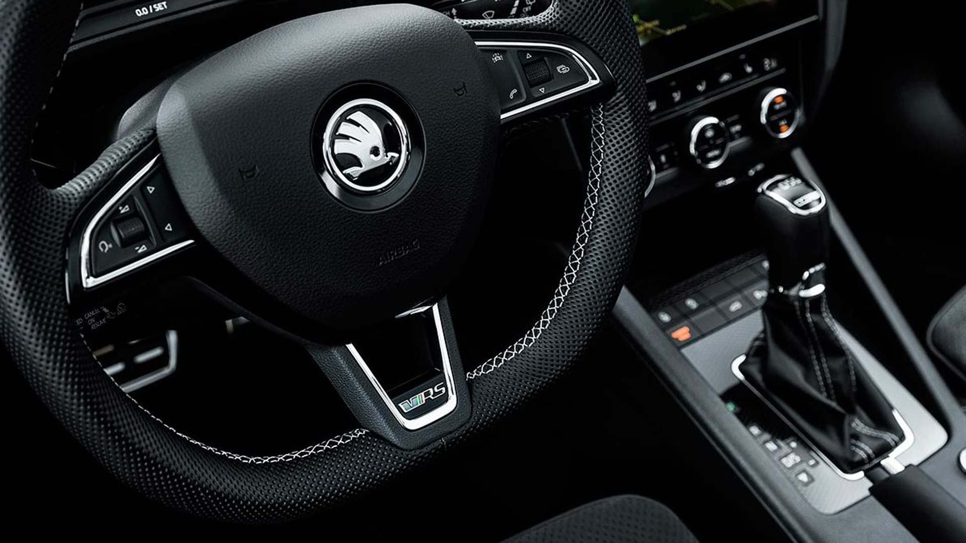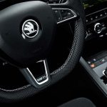 Στο εσωτερικό η ταπετσαρία συνδυάζει ύφασμα με αλκαντάρα και διαθέτει κόκκινες ή γκρι ραφές, ενώ το λογότυπο RS έχει κεντηθεί στις πλάτες των καθισμάτων. Στα αξιοσημείωτα να αναφέρουμε το σπορ τιμόνι, την πρίζα 12V στον χώρο αποσκευών, τον διζωνικό κλιματισμό, ενώ ως ένα γνήσιο Skoda παραμένει πιστό στη φιλοσοφία Skoda Simply Clever, που εκφράζεται με μια σειρά «έξυπνων» πρακτικών λύσεων. Όπου λύσεις, προσθέστε τους πολλούς και άνετους χώρους στην καμπίνα, αλλά και τα 568 λίτρα του χώρου αποσκευών.