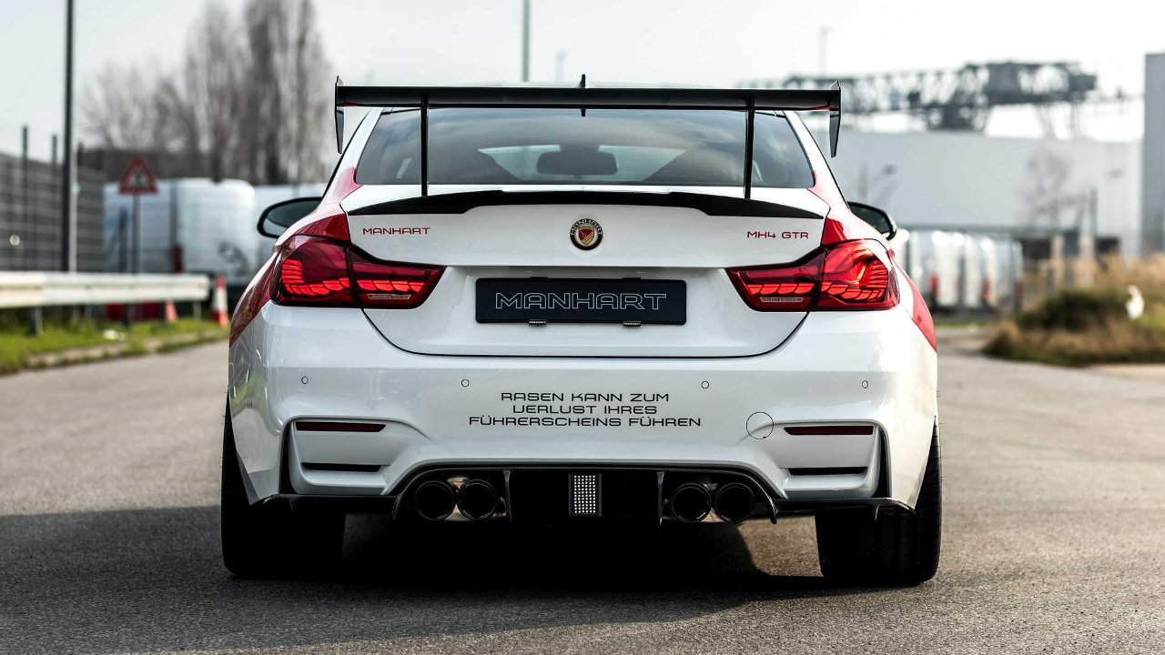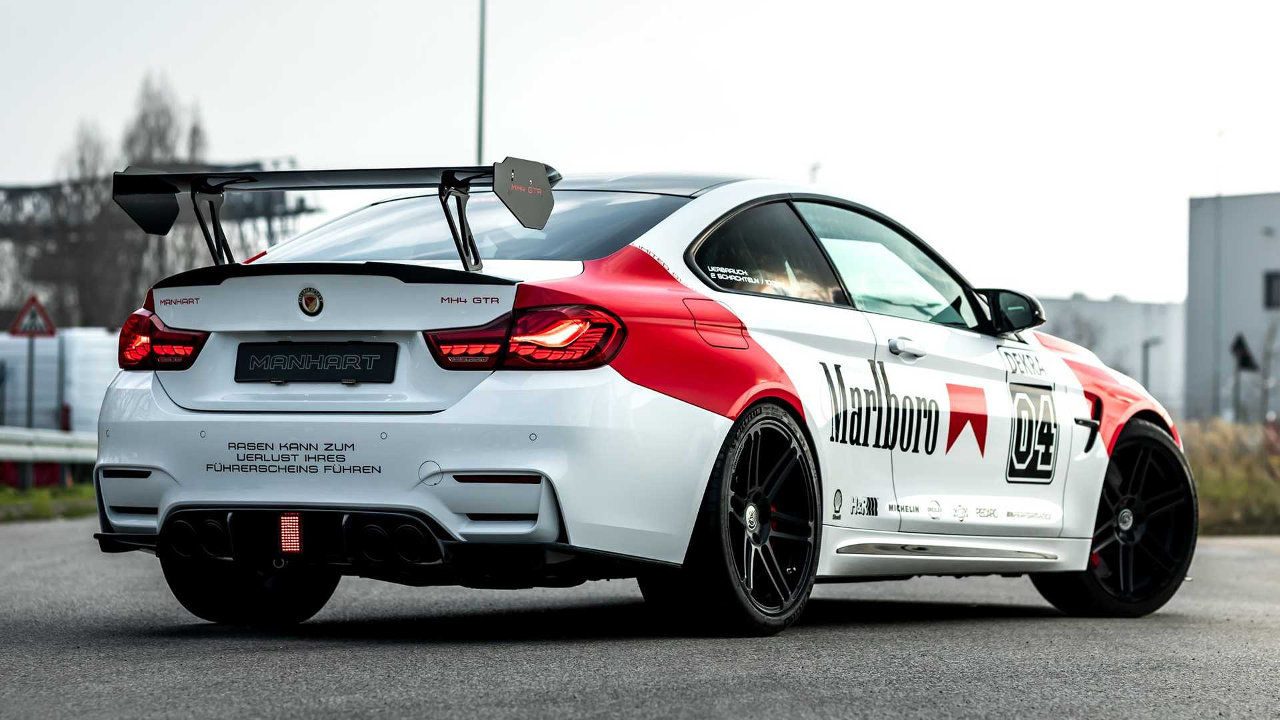 Έναντι της “στάνταρ” συλλεκτικής έκδοσης της προηγούμενης M4, η πρόταση της Manhart ξεχωρίζει αμέσως από τα “Marlboro Motorsport” γραφικά του αμαξώματος που δείχνουν αμέσως την αγωνιστική διάθεση των Γερμανών. Εξωτερικά οι αλλαγές δεν έμειναν μόνο στα γραφικά με την γνωστή εταιρεία βελτιώσεων να προσθέτει στο εμπρός μέρος τα δικά της αεροδυναμικά βοηθήματα, με το νέο σπόιλερ να είναι κατασκευασμένο από ανθρακονήματα.