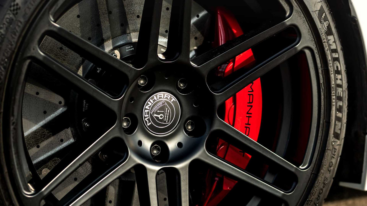 Από το ίδιο υλικό είναι φτιαγμένες και οι νέες ποδιές, όπως και η μεγάλων διαστάσεων αεροτομή που τοποθέτησε η Manhart, ενώ νέος και ανθρακονημάτινος είναι ο διαχύτης που έχει τοποθετηθεί στον πίσω προφυλακτήρα. Η εξωτερική εικόνα ολοκληρώνεται από τις νέες μαύρες ζάντες των Γερμανών “Concave One” που φτάνουν σε διάμετρο τις 20 ίντσες με τα ελαστικά να είναι διαστάσεων 255/35 και 295/30 εμπρός και πίσω αντίστοιχα.