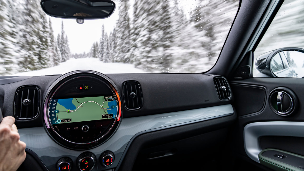 Πίσω από τη λίμνη Storavan, το τοπίο αλλάζει και απέραντα δάση περνούν μπροστά από το παρμπρίζ του Cooper S Countryman ALL4. Σε αρμονία με το περιβάλλον, η φωτιζόμενη διακοσμητική επένδυση σε “Frozen Bluestone” διαθέτει το γραφικό μοτίβο ενός ορεινού τοπίου, μαρτυρώντας το έδαφος που προτιμάτο μοντέλο της MINI.