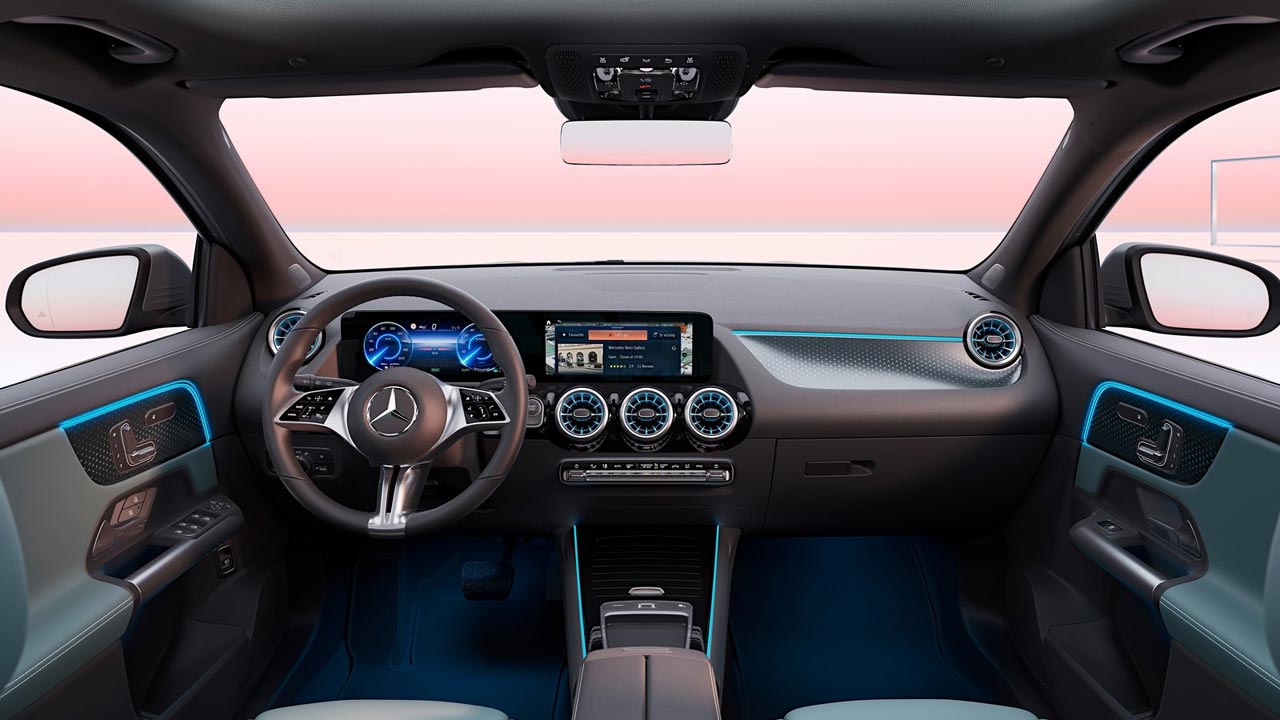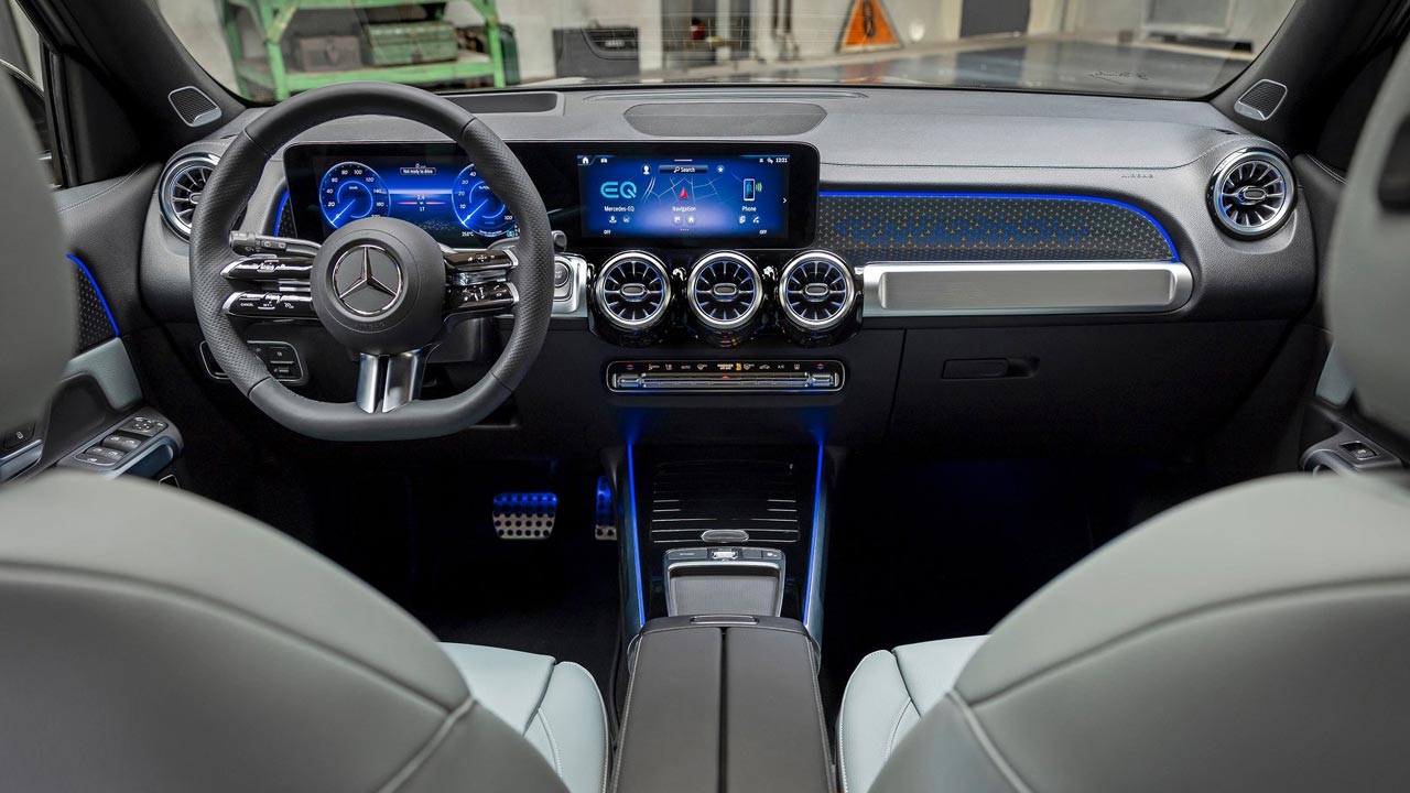 Οι καινοτομίες στον εσωτερικό χώρο περιλαμβάνουν το τιμόνι νέας γενιάς με χειριστήρια αφής, καθώς και τον διάκοσμο σε καφέ ξύλο φλαμουριάς με ανοικτούς πόρους και μοτίβο Mercedes-Benz με φωτισμό. Χαρακτηριστικό που εναρμονίζει τις EQA και EQB οπτικά με τα μεγαλύτερα μοντέλα της οικογένειας. Επίσης, το MBUX έχει πλέον να επιδείξει βελτιωμένο χειρισμό με φωνητικές εντολές, ενώ τα συστήματα υποβοήθησης οδήγησης είναι τελευταίας γενιάς.