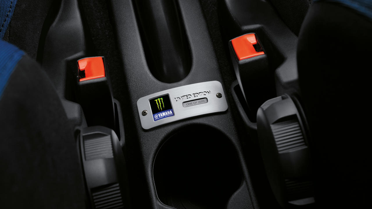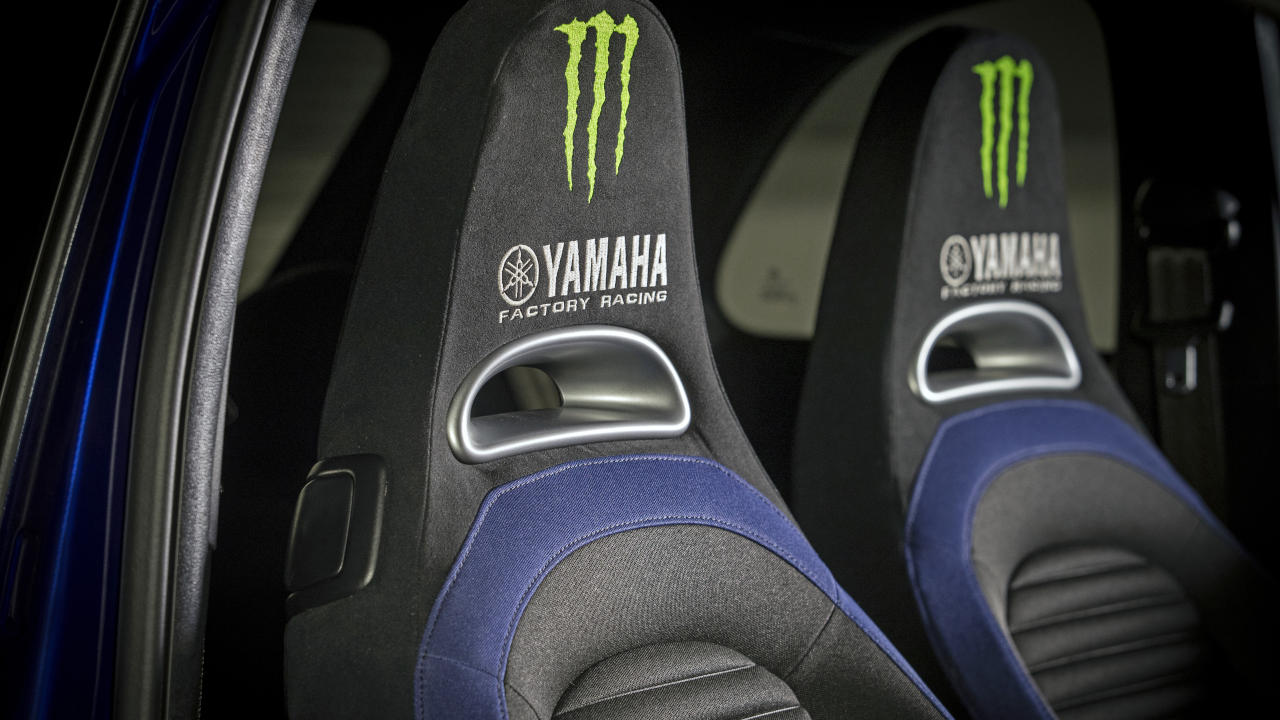 Στο εσωτερικό νέα είναι τα σπορ καθίσματα σε μπλε απόχρωση που φέρουν το λογότυπο “Monster Energy Yamaha MotoGP” στα προσκέφαλα. Η ειδική αριθμημένη πλακέτα βρίσκεται στο τούνελ της μετάδοσης, ενώ μπλε στοιχεία ξεχωρίζουν πάνω στο μαύρο ταμπλό, συνεχίζοντας τη διχρωμία του αμαξώματος.