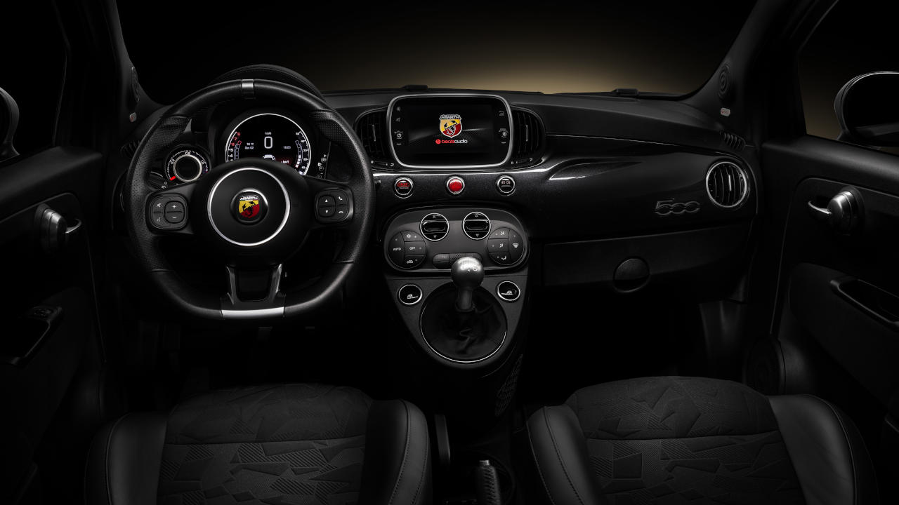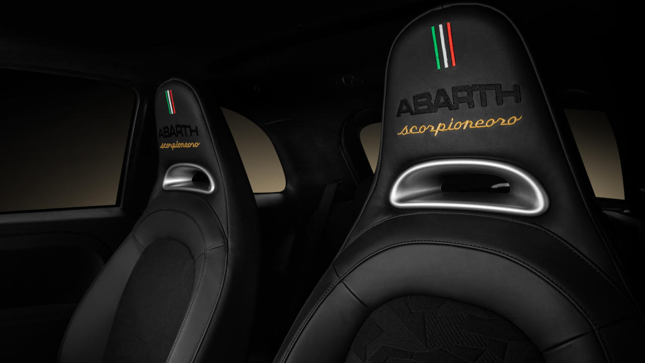 Στο εσωτερικό τα νέα σπορ καθίσματα Abarth “Scorpioflage” έχουν επένδυση από μαύρο δέρμα και ειδική επεξεργασία ώστε να συγκρατούν καλύτερα το σώμα στη σπορ οδήγηση. Στο προσκέφαλο η λέξη “Scorpioneoro” κυριαρχεί μαζί με την ιταλική σημαία, ενώ το ταμπλό με τα ματ μαύρα στοιχεία, η χρυσή πλακέτα στο κεντρικό τούνελ και τα ειδικά ταπέτα ολοκληρώνουν την εικόνα. Το ιδιαίτερο στιλ συνοδεύεται και από πλούσιο εξοπλισμό, ο οποίος περιλαμβάνει το σύστημα πολυμέσων HD Uconnect με οθόνη αφής επτά ιντσών και συμβατότητα Apple CarPlay και Google Android AutoTM, αλλά και ηχοσύστημα BeatsAudio ισχύος 480 W.