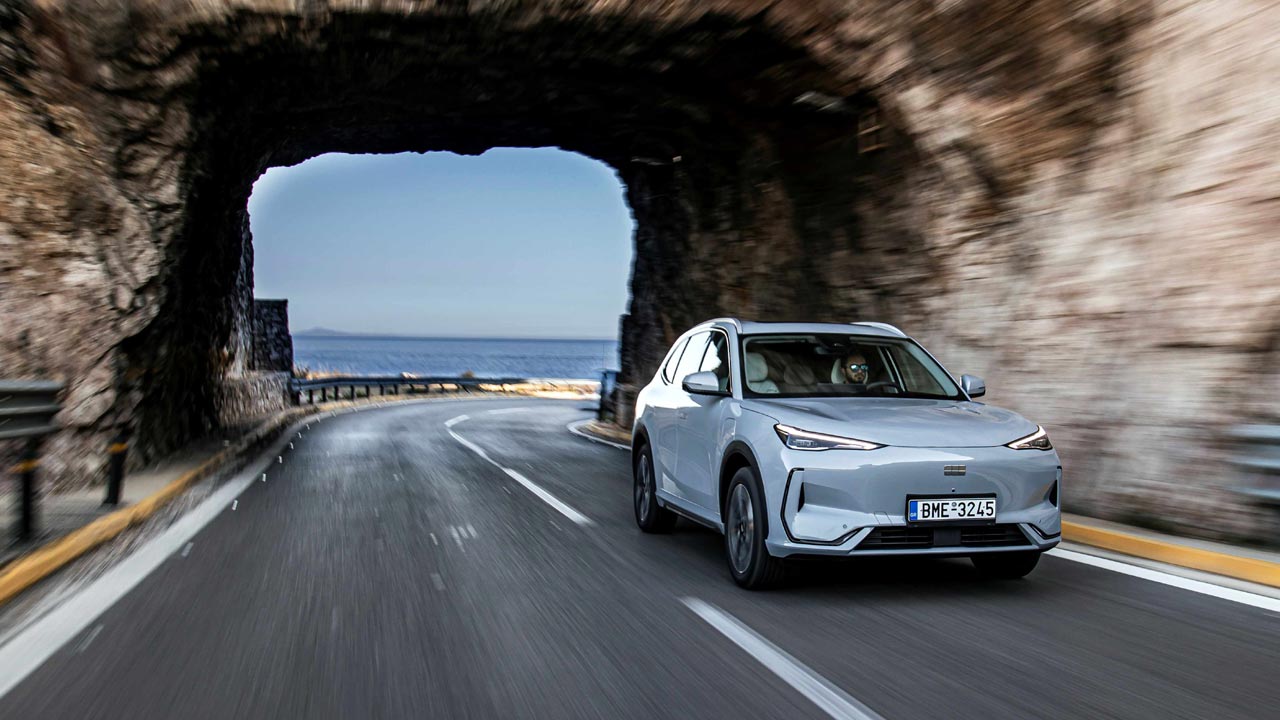 Στα πιο… τεχνικά τώρα, το Geely EX5 είναι εξοπλισμένο με μπαταρία 60,22 kWh και προσφέρει αυτονομία έως 430 χλμ. (WLTP) στην έκδοση Pro, ενώ η έκδοση Tech φτάνει τα 410 χλμ. Η μέγιστη ισχύς φτάνει τα 218 ps και η ροπή τα 320 Nm, προσφέροντας δυναμική και άμεση επιτάχυνση 0-100 km/h σε μόλις 6,9” (τα νούμερα είναι επίσημα της εταιρείας). Επιπρόσθετα, το Geely EX5 προσφέρει τρία προφίλ οδήγησης, Economy / Normal / Sport, προκειμένου επιμέρους λειτουργίες όπως η απόκριση του κινητήρα, το σύστημα διεύθυνσης και τα φρένα, να προσαρμόζονται ανάλογα.