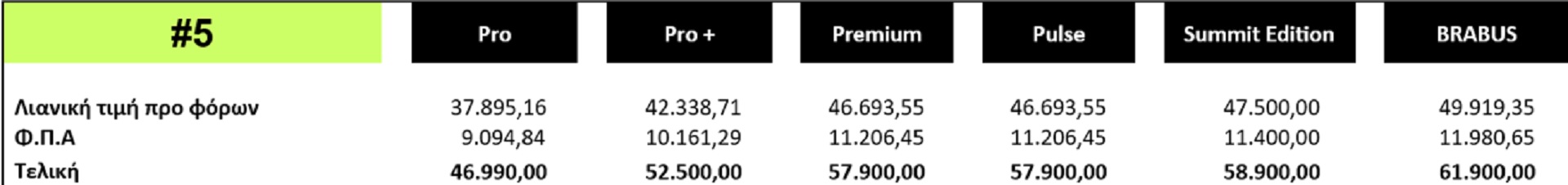 smart #5 –3.000€ (συμπ. ΦΠΑ) ανεξάρτητα από την επιδότηση του Κινούμαι ηλεκτρικά (-3.000€) δηλ. συνολικό όφελος στον πελάτη -6.000€ από την τιμη τιμοκαταλόγου