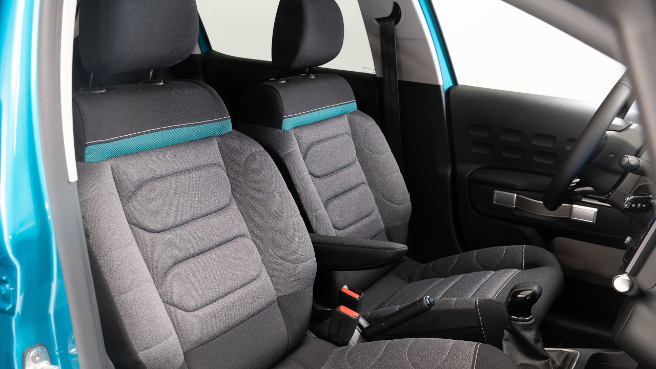 Το ανανεωμένο C3 διατίθεται με δύο νέα προαιρετικά χρώματα εσωτερικού χώρου, ένα ζεστό και κομψό και ένα που αποπνέει περισσότερο δυναμισμό, σύμφωνα με τους Γάλλους, τα Emerald και Techwood. Σχεδιασμένα από την αρχή είναι και τα καθίσματα Advanced Comfort για ακόμη πιο υψηλά επίπεδα άνεσης με του οδηγού να φέρει και ρυθμιζόμενη οσφυική υποστήριξη. Ο οδηγός επωφελείται και από την ύπαρξη υποβραχιόνιου. Αποθηκευτικοί χώροι υπάρχουν τόσο μπροστά όσο και πίσω. Το ανανεωμένο C3 προσφέρει κεντρικό χώρο αποθήκευσης, ο οποίος επιτρέπει την απελευθέρωση ενός μέγιστου χώρου στο μπροστινό μέρος του οχήματος, καθώς και ένα μεγάλο ντουλαπάκι στην πλευρά του συνοδηγού χωρητικότητας 6,25 λίτρων. Παράλληλα ο χώρος αποσκευών έρχεται για να προσθέσει άλλα 300 λίτρα, μια τιμή πολύ καλή για την κατηγορία. Να σημειωθεί ότι το μήκος του C3 είναι 3,99 μέτρα, το πλάτος του φτάνει στα 1,75 μέτρα, ενώ το ύψος του στα 1,47 μέτρα με το μεταξόνιο να ανέρχεται στα 2,54 μέτρα.