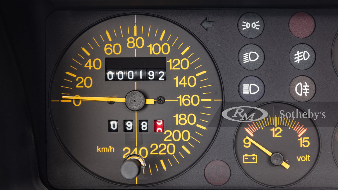 H εικονιζόμενη Lancia Delta HF Integrale 16V έχει αρκετές “ιδιαιτερότητες” που συμβάλλουν στη σπανιότητα της. Πιο σημαντική από αυτές τα μόλις… 192 χιλιόμετρα που γράφει στο οδόμετρο της, τα οποία συνοδεύονται στην κυριολεξία από τις ζελατίνες, σε πόρτες και πάτωμα, τις οποίες αυτή η Integrale φοράει από τότε που βγήκε από το εργοστάσιο!