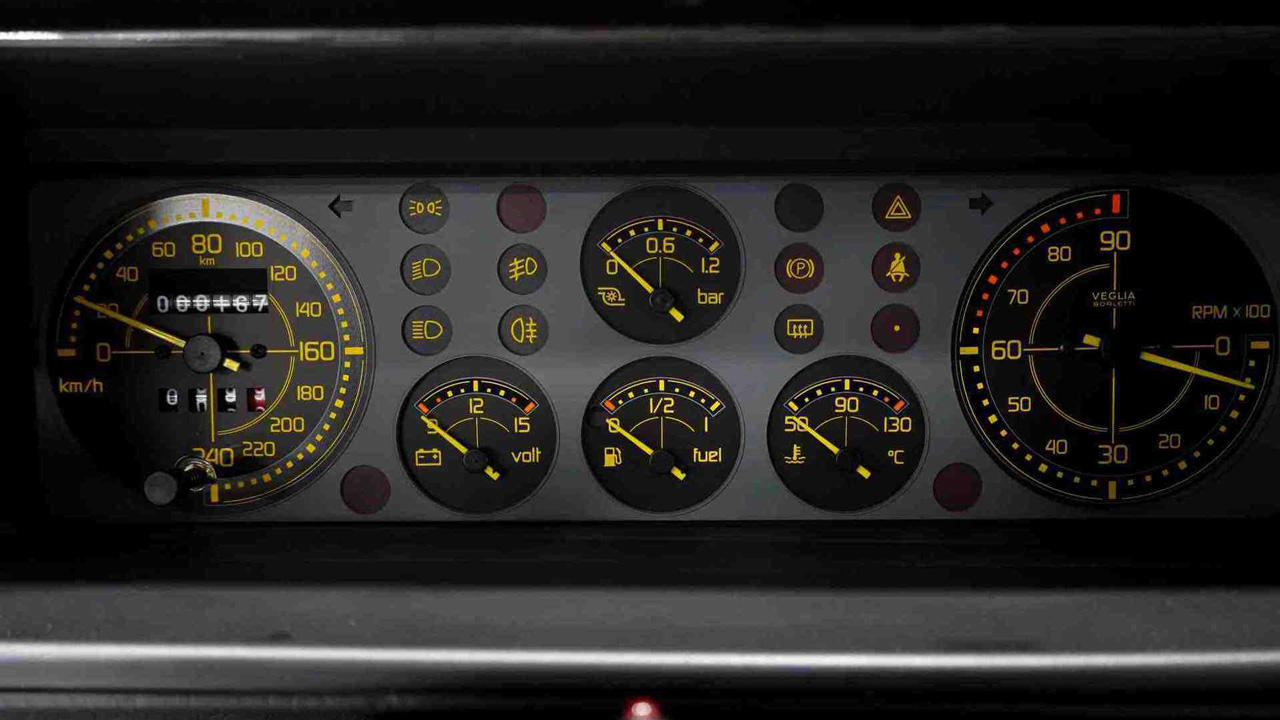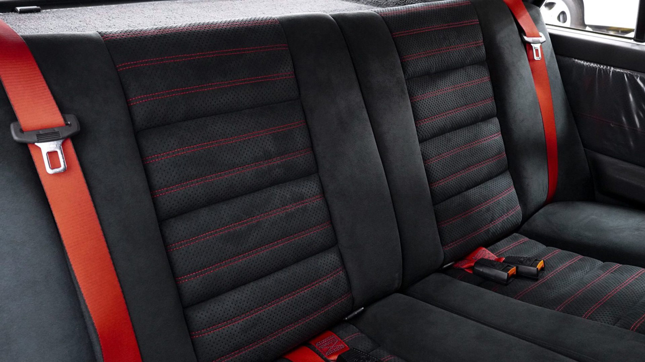 Μάλιστα, δεν έχουν αφαιρεθεί από πολλά σημεία καν οι προστατευτικές ζελατίνες από το εσωτερικό, με την κατάσταση εκεί να είναι μοναδική. Υπάρχουν σπορ καθίσματα της Recaro με καστόρ επένδυση και κόκκινες ρίγες. Κόκκινες είναι και οι ζώνες ασφαλείας, ενώ τα πατάκια φέρουν το λογότυπο της Martini. Τα αναλογικό καντράν αναγράφει τα συνολικά χιλιόμετρα που έχει διανύσει και αυτός είναι ο κυριότερος λόγος που θα δούμε μία εκτόξευση τιμής.