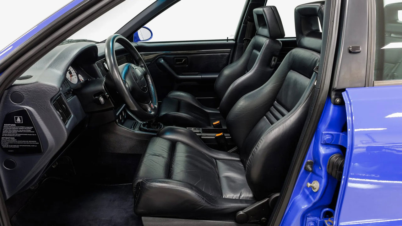 Το Audi RS2 Avant που βλέπετε είναι ένα από τα περίπου 2.900 αντίτυπα που κατασκευάστηκαν και βγήκε από το εργοστάσιο το μακρινό 1994 στον “RS Blue Pearl Effect” χρωματισμό. Μπορεί τα περισσότερα σπάνια αυτοκίνητα να μένουν κλειδωμένα στο γκαράζ, αλλά στην προκειμένη περίπτωση κάτι τέτοιο δεν ισχύει, μιας και στο οδόμετρο αναγράφονται 289.000 χλμ. Το αυτοκίνητο αγοράστηκε το 2013 από τον σημερινό του ιδιοκτήτη, ο οποίος αναφέρει ότι το σύστημα μετάδοσης κίνησης και η ανάρτησή του επισκευάστηκαν το 2016 και βάφτηκε ξανά το 2023 με ίδιο χρώμα.