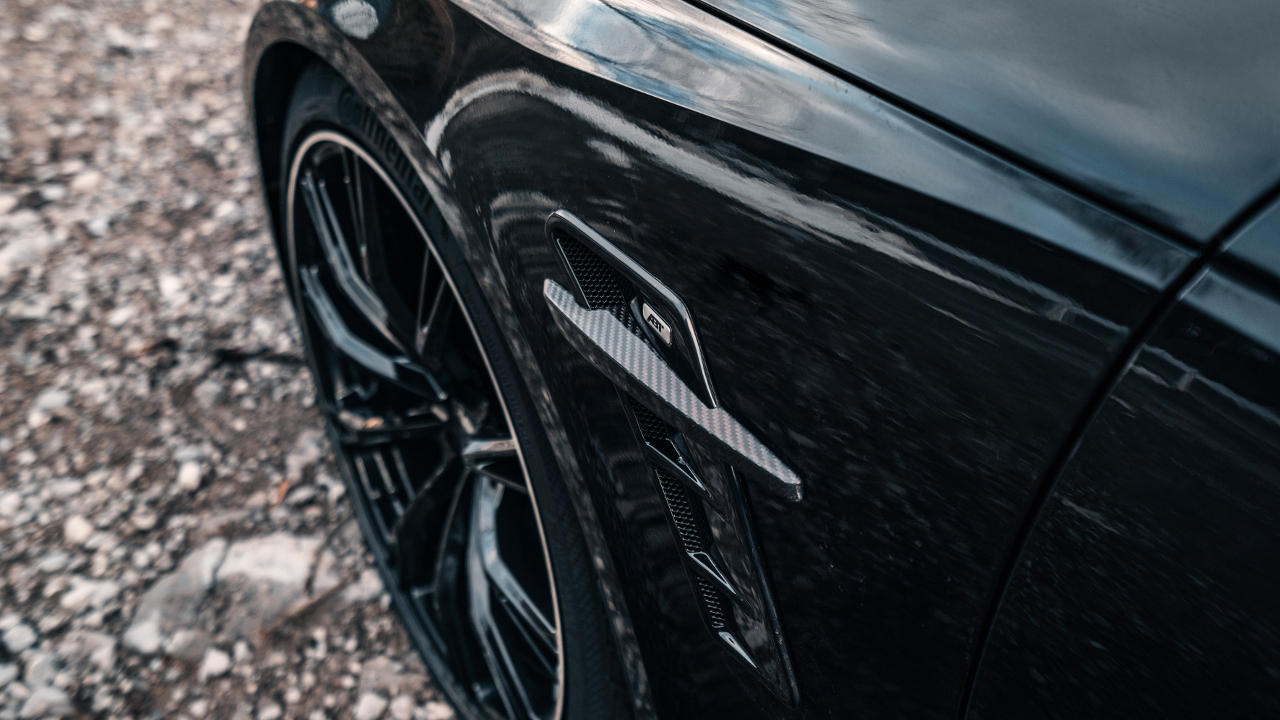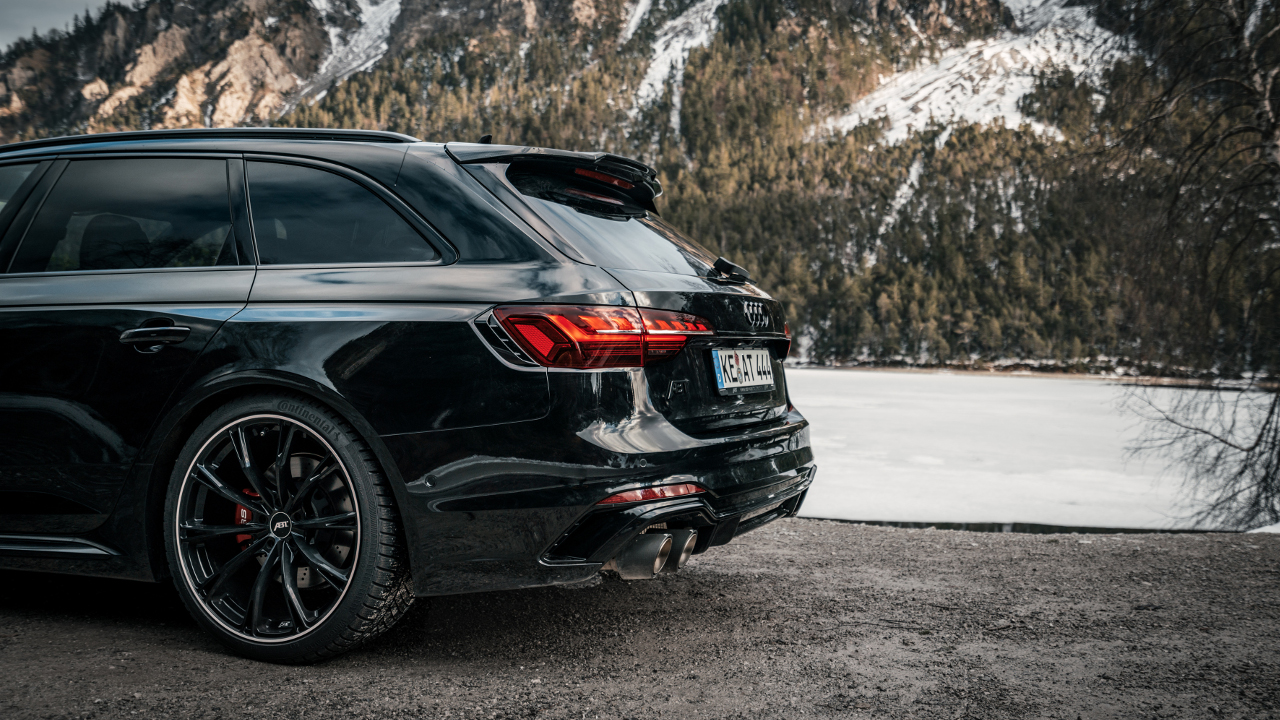 Οι αλλαγές της ABT στο ήδη δυναμικό παρουσιαστικό του μοντέλου της γερμανικής εταιρίας είναι κομψά διακριτικές. Δίνουν ωστόσο αυτό το κάτι παραπάνω που ψάχνει κανείς για να ξεχωρίσει από το πλήθος. Οι ανθρακονημάτινοι αεραγωγοί στα εμπρός φτερά και το γυαλιστερό σπόιλερ στο πίσω μέρος συμπληρώνονται από τη νέα εξάτμιση της εταιρίας με τις τέσσερις μεγάλες ανθρακονημάτινες απολήξεις, με διάμετρο 102 χλστ. έκαστη. Το δικό τους ρόλο παίζουν φυσικά και οι νέες μαύρες ζάντες της ABT διαθέσιμες με διάμετρο 20-21 ίντσες, σε τρία σχέδια.