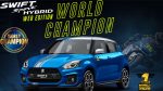 Το εορταστικό Swift Sport Hybrid World Championship Edition ΄πως ονομάζεται είναι βαμμένο στο μπλε χρώμα της εργοστασιακής ομάδας της Suzuki στο MotoGP και ξεχωρίζει επίσης και για τις τρεις λευκές λωρίδες που διατρέχουν το αμάξωμα από τον εμπρός προφυλακτήρα μέχρι και τον πίσω. Μην ξεχάσουμε και την οροφή που για την περίσταση είναι χρώματος ασημί.