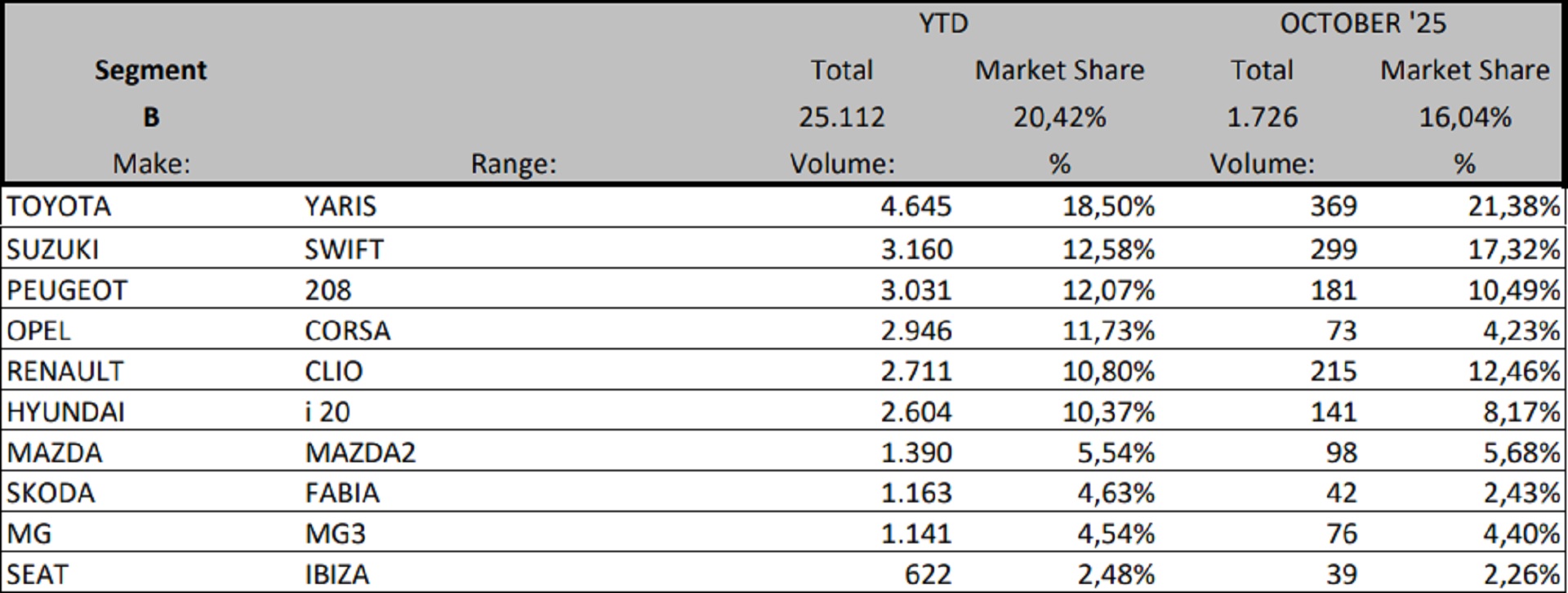 Τα στοιχεία του ΣΕΑΑ για το 10μηνο του 2025 έχουν ήδη δημοσιευθεί και πάμε να δούμε τι συμβαίνει στη δεύτερη πιο δημοφιλή κατηγορία της αγοράς. Πρόκειται για τα supermini (Β-Segment), τα οποία κατέχουν συνολικά το 20,42% της εγχώριας αγοράς. Αυτή τη φορά θα γνωρίσουμε τα δέκα δημοφιλέστερα supermini, αλλά και το πιο προσιτό!