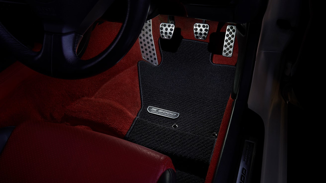 Τα δώρα της Honda συνεχίζονται και για το εσωτερικό του Roadster με πατάκια σε κόκκινο ή σκούρο γκρι χρώμα και τα επετειακά σήματα πάνω τους, ενώ βλέπουμε και ένα νέο κάλυμμα για το ραδιόφωνο που φέρει επίσης τα γραφικά για τα 20 χρόνια του μοντέλου.