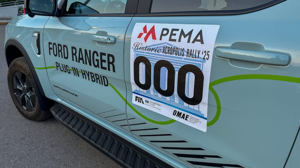 Ο λόγος για τα δύο ετοιμοπόλεμα Ford Ranger Plug-In Hybrid με τους αριθμούς “000” και “00” στις πόρτες τους αποτέλεσαν φέτος τα πλοηγά αυτοκίνητα του PEMA Historic Acropolis Rally, που πραγματοποιήθηκε στις 5-7 Σεπτεμβρίου.
