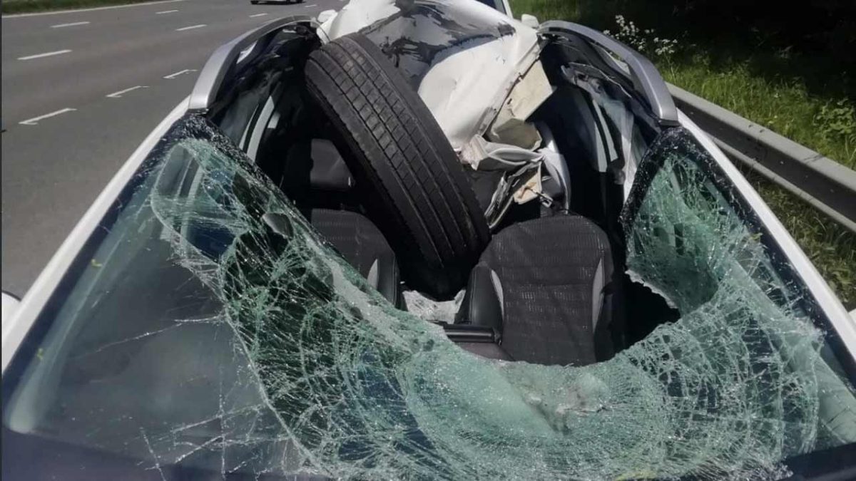 “Αδέσποτος” τροχός καρφώθηκε σε αυτοκίνητο. Τρομακτικές εικόνες