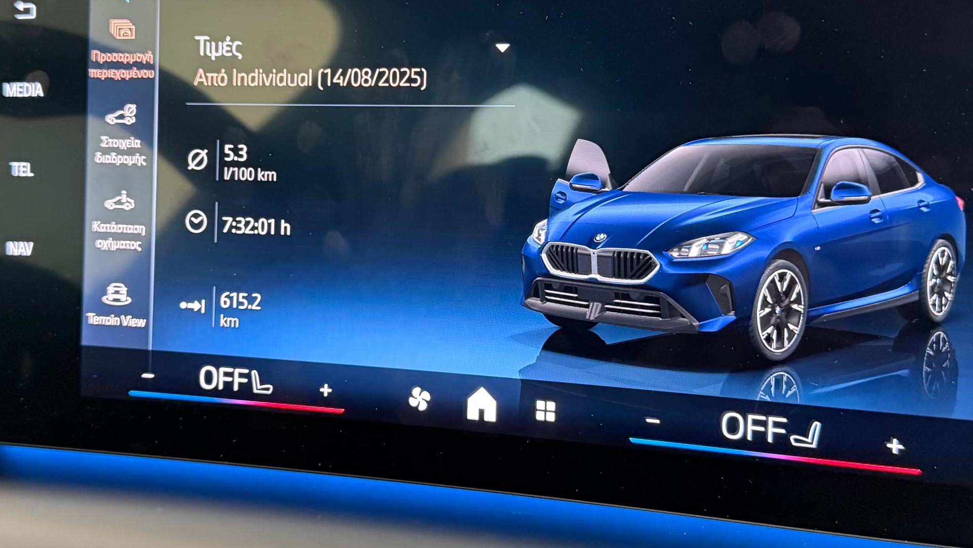 Αναφορικά τώρα με την κατανάλωση, η επίσημη μέση τιμή κυμαίνεται στο εύρος 5,2 – 5,7 λτ./100 χλμ. βάσει του WLTP. Το εν λόγω εύρος είναι αρκετά ρεαλιστικό. Όπως θα δείτε στην παρακάτω εικόνα, διένυσα 615 χλμ. (τα περισσότερα στον αυτοκινητόδρομο με ταχύτητα έως 130 χλμ./ώρα) και η μέση κατανάλωση διαμορφώθηκε στα 5,3 λτ./100 χλμ. Σε μεικτές συνθήκες, με περισσότερα χλμ. σε αστικό περιβάλλον, θα υπολογίζετε περίπου 6,5 λτ./100 χλμ.