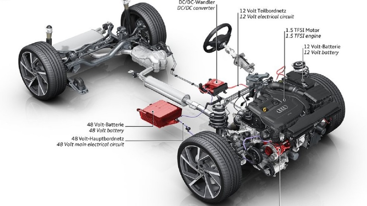 Ασφαλώς, υπάρχει και η εξηλεκτρισμένη εκδοχή του ήπια υβριδικού 1.5 TFSI με 48-Volt. Το μεγαλύτερο πλεονέκτημα είναι η μείωση της κατανάλωσης κατά 0,4 λίτρα ανά 100 χιλιόμετρα. Κάτω από το κάθισμα του συνοδηγού βρίσκεται μία μπαταρία ιόντων λιθίου για να τροφοδοτεί τον εκκινητήρα (BAS). Κατά την επιβράδυνση, το BAS ανακτά ενέργεια και φορτίζει τη μπαταρία. Παράλληλα, μπορεί να προσφέρει έως και 50 Nm ροπής στον κινητήρα, ενώ τον απαλλάσσει σε ταχύτητες κάτω των 22 χλμ/ώρα. Η έκδοση 35 TFSI MHEV συνδυάζεται με το αυτόματο S tronic 7 σχέσεων.