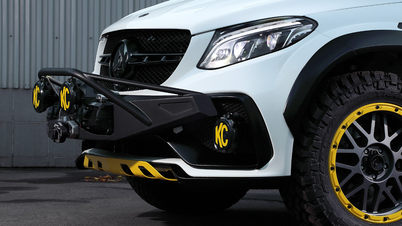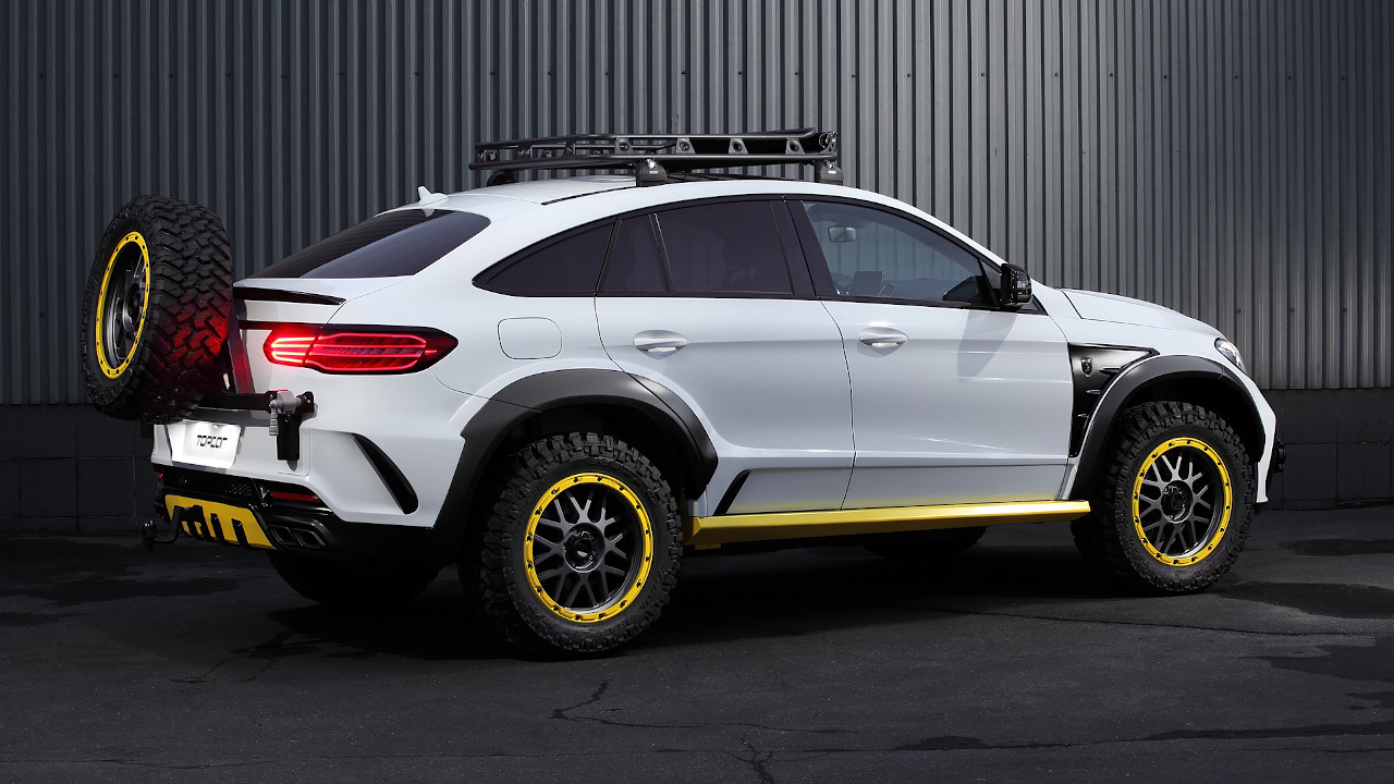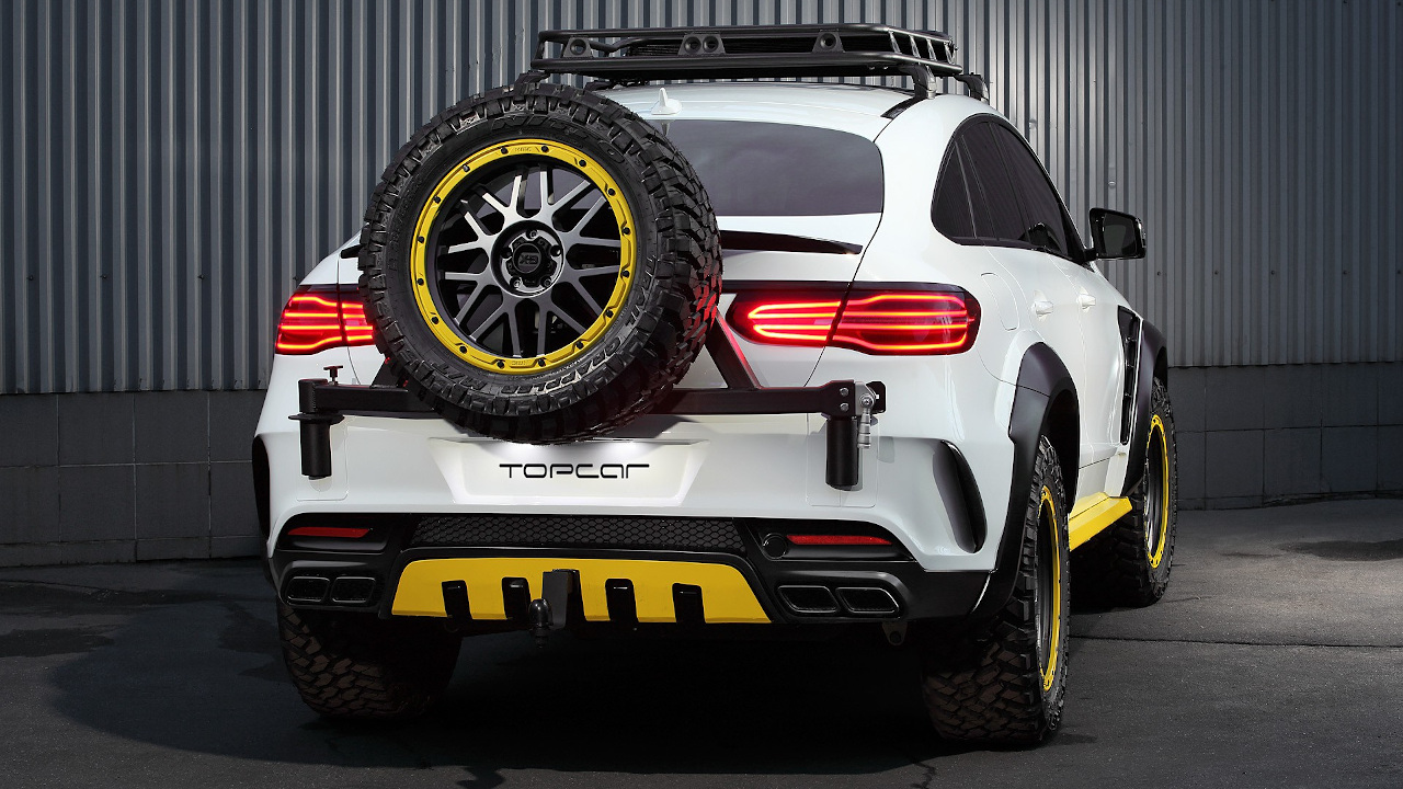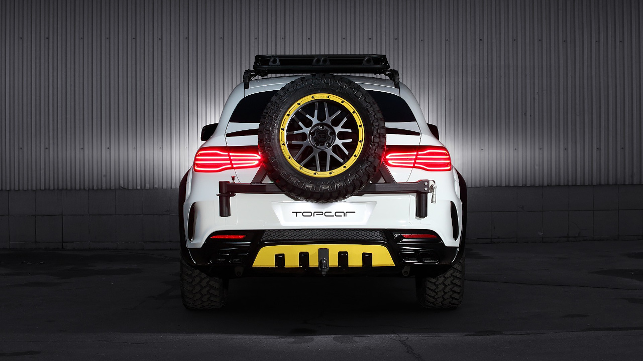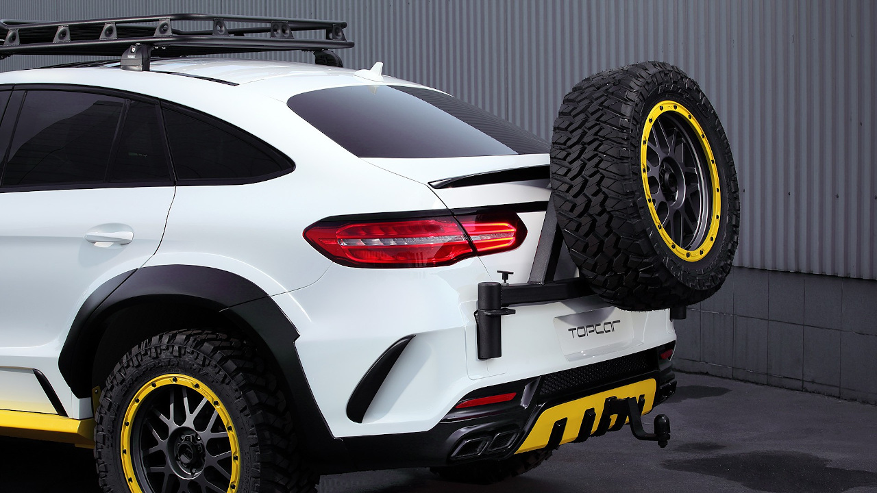 Τα τύπου Bull Bar κάγκελα εμπρός με τον εργάτη, το καλάθι στην οροφή και η τοποθέτηση της ρεζέρβας εξωτερικά στην πίσω πόρτα κάνουν την GLE να δείχνει σκληροτράχηλη. Την ίδια στιγμή όμως μοιάζουν και ελαφρώς παράταιρα πάνω στο κομψό της αμάξωμα και δίνουν την εντύπωση ότι θα μπορούσαν να έχουν γίνει πρόχειρα σε συνοικιακό συνεργείο. Αν ήταν αυτός ο στόχος τότε επετεύχθη απόλυτα (από ό,τι καταλαβαίνουμε υπάρχει και σχετική τάση στην αγορά), με highlight την μεταλλική σχάρα οροφής που μοιάζει σα να έχει προέρθει από Lada της δεκαετίας του ’80 πάνω στην καλλίγραμμη GLE. Περί ορέξεως ουδείς λόγος, ωστόσο η δημιουργία της TopCar είναι ένας καλός οδηγός για το τι να ΜΗΝ κάνεις στην GLE σου, με μόνη εξαίρεση ίσως τις ζάντες με τα εκτός δρόμου ελαστικά.