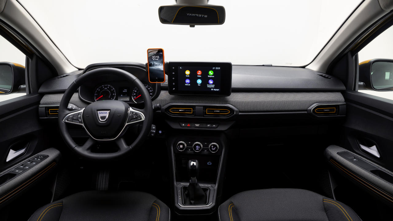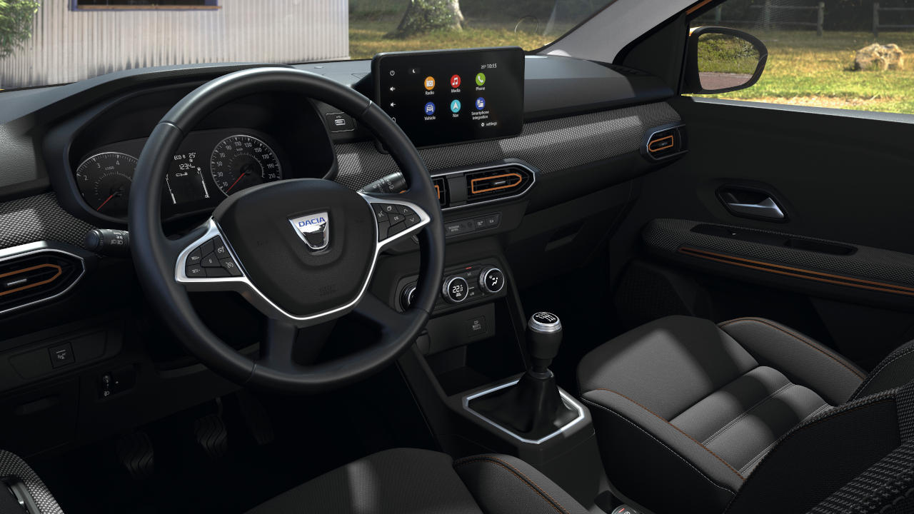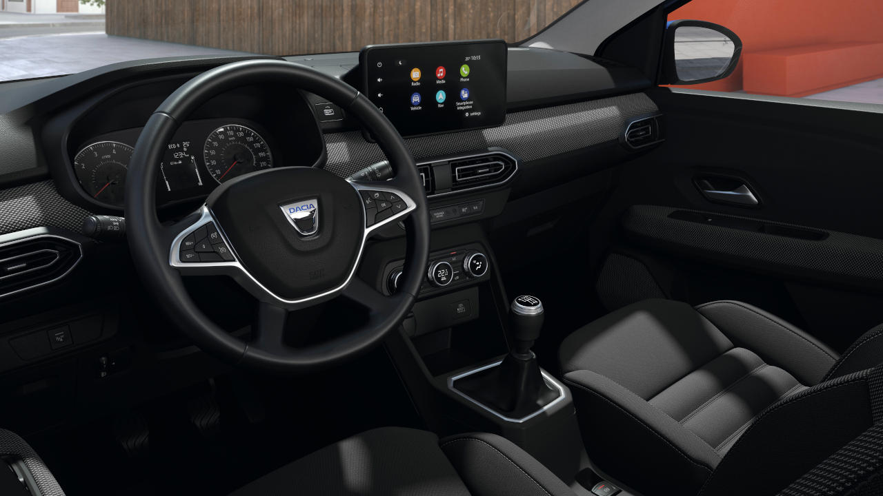 Περνώντας στην καμπίνα, στα highlights είναι το νέο σύστημα πολυμέσων της Dacia, το οποίο κάνει ακόμη περισσότερη εντύπωση στη στάνταρ έκδοση του. Το βασικό σύστημα με τα δύο ηχεία ονομάζεται “Media Control” και επιτρέπει την εκ του ασφαλούς τοποθέτηση του κινητού τηλεφώνου σε περίοπτη θέση στο ταμπλό μετατρέποντας το σε κέντρο ελέγχου μέσω της εφαρμογής “Dacia Media Control” και σύνδεσης με το αυτοκίνητο μέσω bluetooth ή θύρας USB. Έτσι ο οδηγός μπορεί να ελέγχει και από το τιμόνι, το ράδιο, την αναπαραγωγή μουσικής, τις κλήσεις και τα μηνύματα που λαμβάνει στο κινητό του, ενώ η εφαρμογή δίνει πρόσβαση σε αναγνώριση φωνής μέση Android αλλά και στο Siri. Στο σύστημα περιλαμβάνεται και η TFT οθόνη των 3,5 ιντσών που βρίσκεται στον πίνακα πληροφοριών του οδηγού.