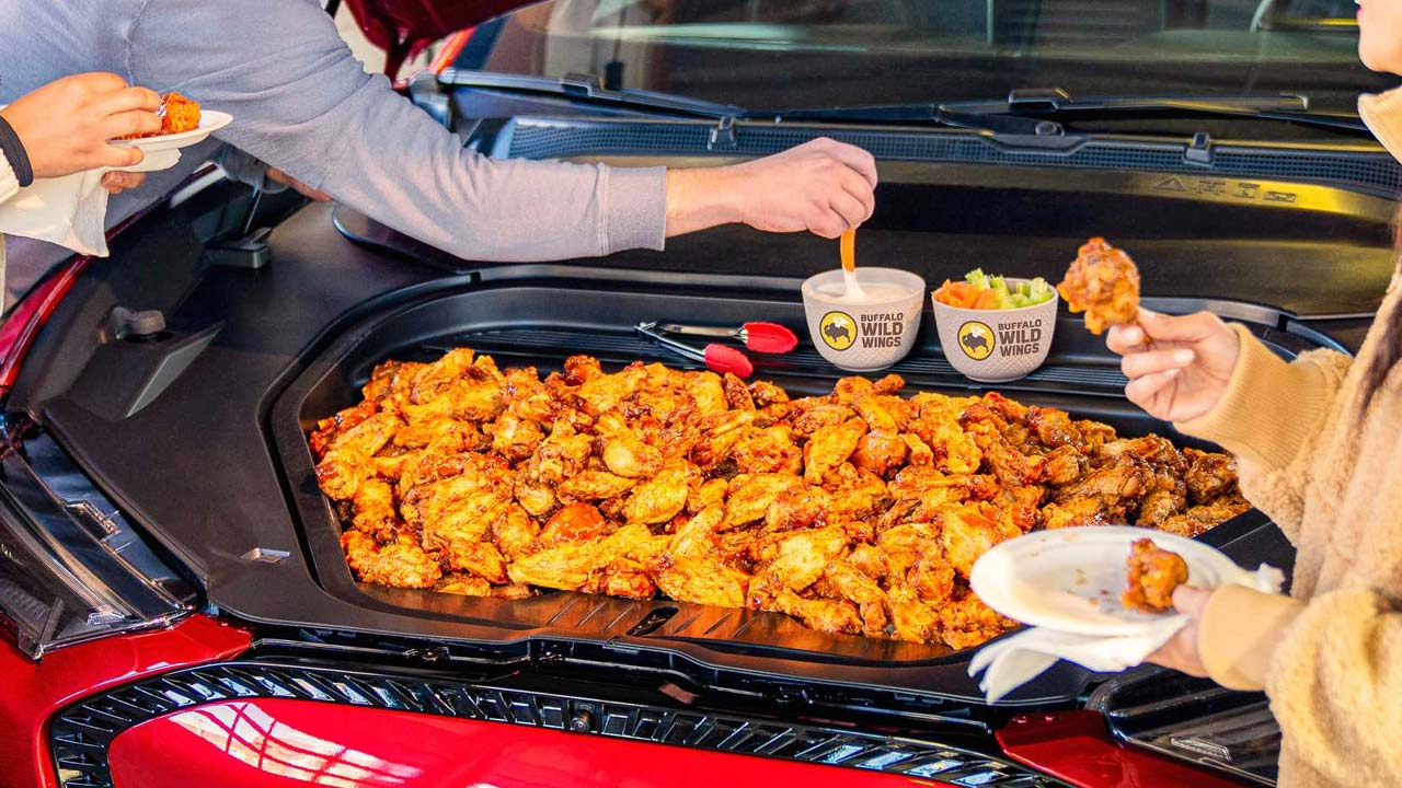 Η Ford Mustang Mach-E είναι ένα ηλεκτρικό SUV με αποθηκευτικό χώρο 135 λίτρων που γεμίζει με γαρίδες, αναψυκτικά και φτερούγες κοτόπουλου...