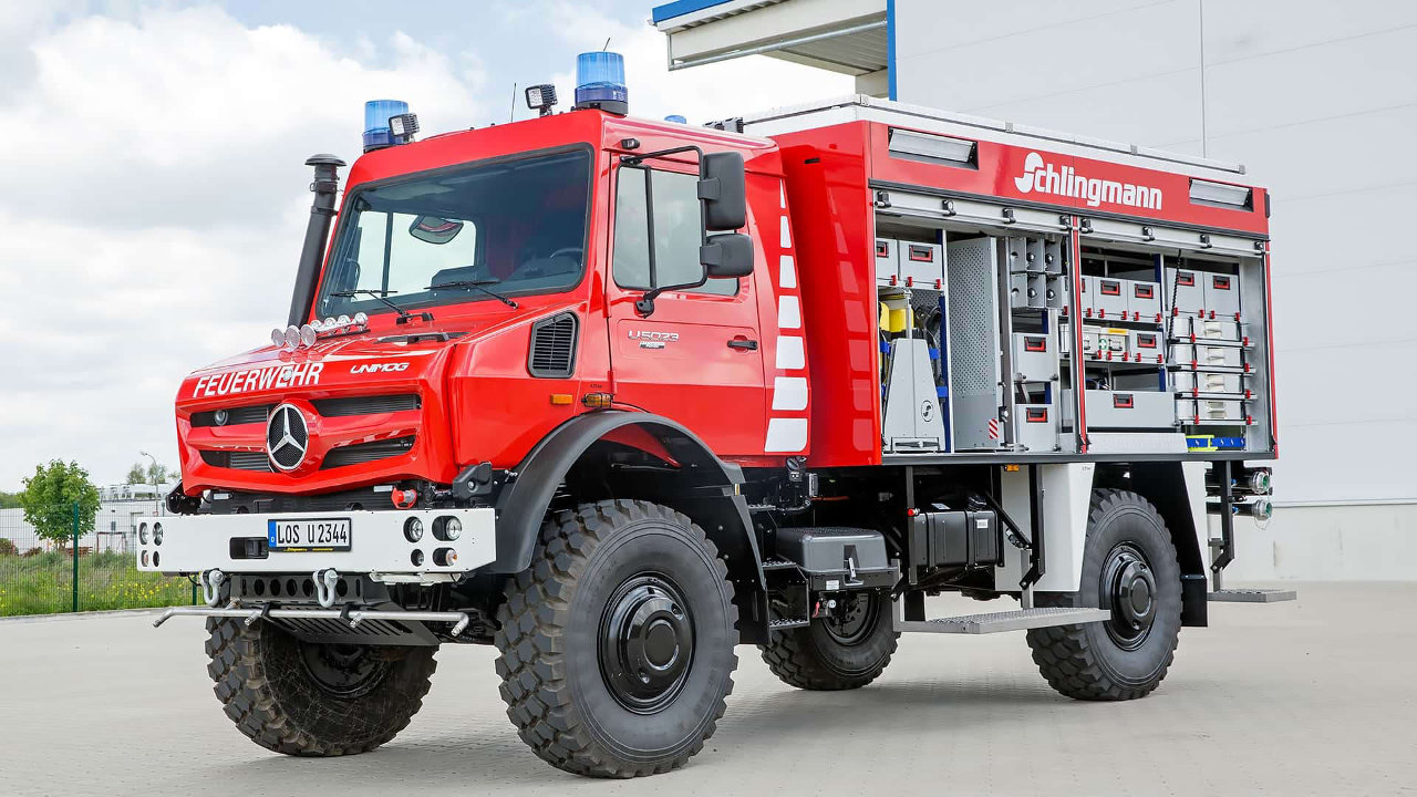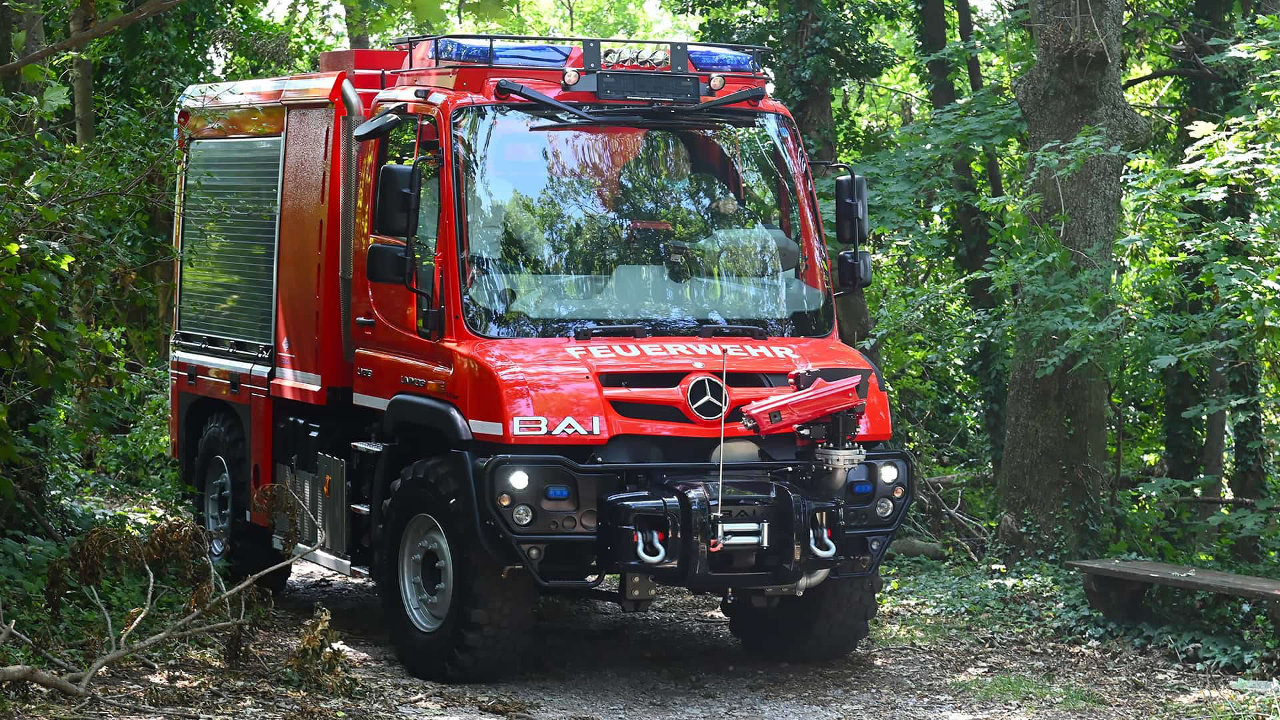 Ως βάση για τα πυροσβεστικά Unimog έχει χρησιμοποιηθεί το μοντέλο U 5023, με μονή ή διπλή καμπίνα, αλλά και το ελαφρύτερο U 530. Τα δύο σκληροτράχηλα μοντέλα της Mercedes φέρουν diesel κινητήρες με χωρητικότητα έως και 7,7 λίτρα και απόδοση που φτάνει έως τους 354 ίππους και τα 1.380 Nm ροπής.