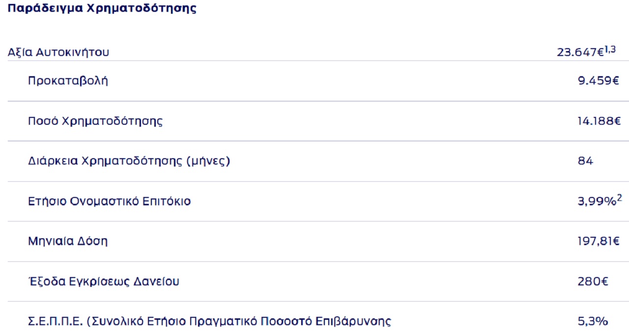 Πάμε τώρα να δούμε με ένα παράδειγμα πως μπορεί να αποκτηθεί η βασική έκδοση του Ford Puma (Puma Titanium 5D 1.0T 125PS mHEV). Στο παράδειγμα που δημοσιεύει η εταιρεία (μπορείτε να το δείτε στην παρακάτω εικόνα), αν ο αγοραστής καταβάλει προκαταβολή ύψους 9.459 ευρώ, προκύπτει μία μηνιαία δόση ύψους 197,81 ευρώ για διάστημα 84 μηνών.