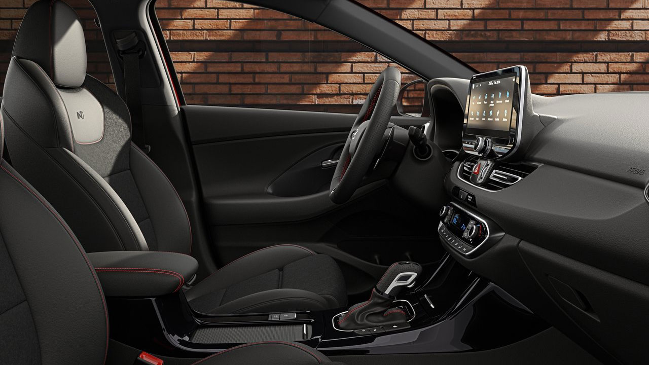 Περνάμε στο εσωτερικό, με το facelift να φέρνει ήπιες αλλαγές και εκεί. Η καμπίνα μπορεί να συνδυαστεί με τέσσερις μοντέρνες επενδύσεις καθισμάτων: ύφασμα, ύφασμα δέρμα, δέρμα καθώς και ύφασμα suede και δέρμα. Αναφορικά με το “ψηφιακό” περιβάλλον του αυτοκινήτου, όλες οι εκδόσεις φέρουν μία κεντρική οθόνη μεγέθους 10,25 ιντσών, ενώ πίσω από το τιμόνι υπάρχει μία δεύτερη οθόνη 10,25 ιντσών. Η πρώτη έχει τον ρόλο του infotainment και μεταξύ άλλων περιλαμβάνει ασύρματη συνδεσιμότητα μέσω Android Auto και Apple CarPlay. H δεύτερη οθόνη παρέχει στον οδηγό όλες τις απαραίτητες πληροφορίες σχετικά με την οδήγηση. Επιπλέον, αξιοσημείωτο είναι να αναφέρουμε πως πλέον υπάρχουν συνολικά τρεις θύρες φόρτισης USB τύπου C μπροστά και πίσω. Εννοείται ότι τα “N Line” στοιχεία δεν απουσιάζουν και από το εσωτερικό, όπως για παράδειγμα τα καθίσματα με το σχετικό λογότυπο, οι κόκκινες λεπτομέρειες και τα αλουμινένια πεντάλ.