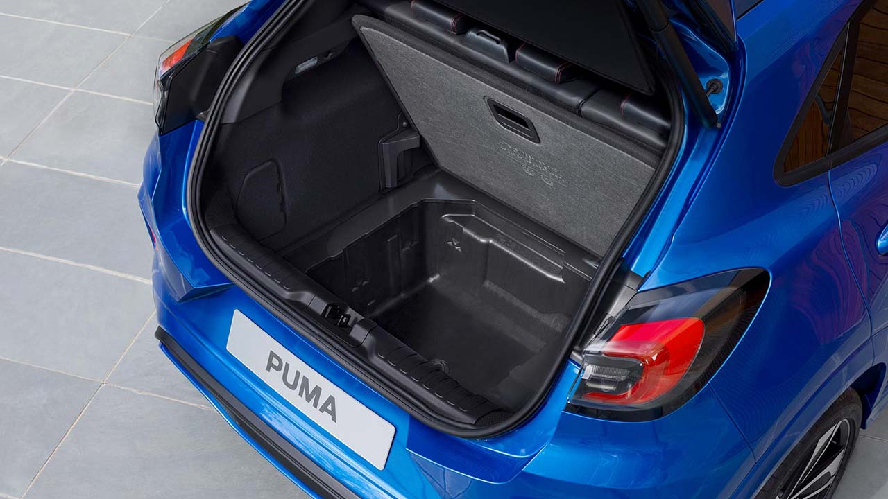 Χάρη στις συμπαγείς διαστάσεις του αμαξώματος και την κορυφαία διαρρύθμιση του εσωτερικού, το νέο Ford Puma εξασφαλίζει αφθονία χώρο στο πίσω κάθισμα, αλλά και τον μεγαλύτερο στην κατηγορία του χώρο φόρτωσης (456 λίτρα). Σημείο αναφοράς εδώ είναι το καινοτόμο MegaBox (διαβάστε εδώ περισσότερα για το MegaBox), ένας βαθύς και ευέλικτος αποθηκευτικός χώρος 80 λίτρων κάτω από το ρυθμιζόμενο δάπεδο του χώρου αποσκευών, το οποίο με τη σειρά του μπορεί να τοποθετηθεί σε τρεις διαφορετικές θέσεις ανάλογα με τις εκάστοτε μεταφορικές ανάγκες σας. Το παζλ των καινοτομιών στο χώρο αποσκευών συμπληρώνει η έξυπνη εταζέρα που προσαρμόζεται αυτόματα στον όγκο των αποσκευών που μεταφέρετε. Το ελαστικό υλικό από το οποίο είναι κατασκευασμένη, το εύκαμπτο πλαίσιό της και ο ιδιαίτερος τρόπος στερέωσής της στην πίσω πόρτα της επιτρέπουν να παραμένει μόνιμα στη θέση της χωρίς να εμποδίζει το κλείσιμο της πίσω πόρτας.
