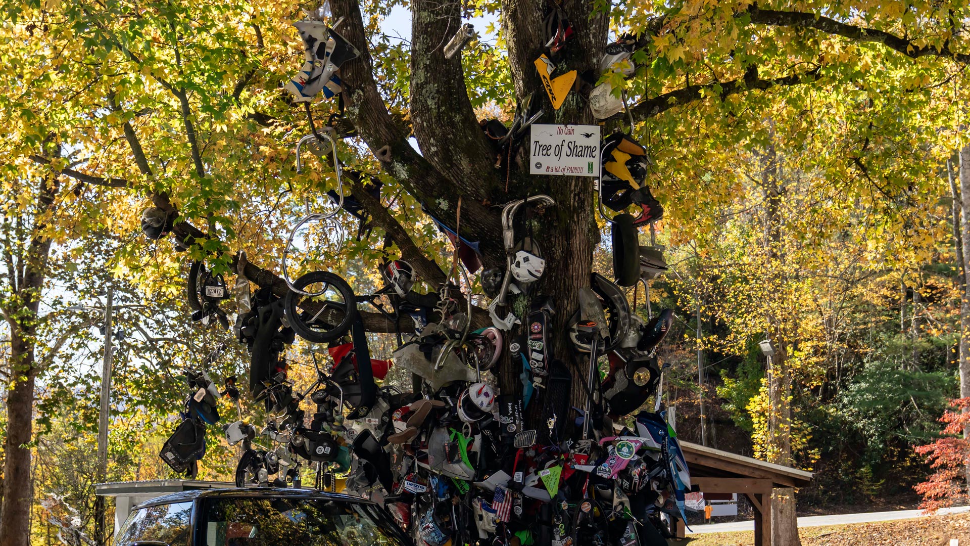 Κάθε ήπειρος φημίζεται για διαδρομές που αξίζει κανείς να οδηγήσει, άλλες είναι πολύ δημοφιλείς και άλλες εντελώς άγνωστες. Η συγκεκριμένη μάλλον ανήκει στη δεύτερη κατηγορία, αλλά έχει μία ιδιαιτερότητα αρκετά ενδιαφέρουσα. Ο λόγος για το “δέντρο της ντροπής” (Tree of Shame), το οποίο βρίσκεται στην διαδρομή Tail of the Dragon (Tail of the Dragon at Deals Gap), έναν δρόμο με 318 στροφές σε μόλις 11 μίλια.
