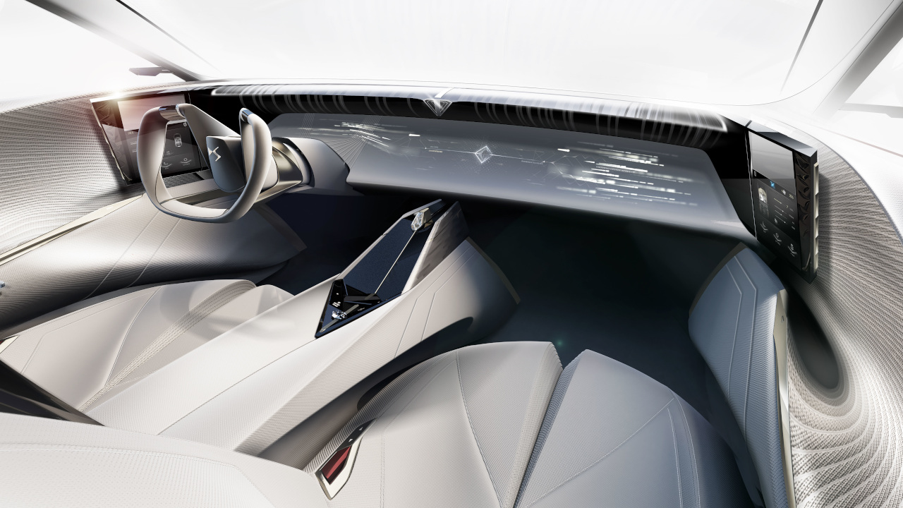 Η καμπίνα του Aero Sport Lounge ακολουθεί μια ελαφρώς διαφορετική λογική από εκείνη που ίσως έχουμε συνηθίσει δίνοντας δευτερεύοντα ρόλο στις οθόνες. Το ταμπλό χωρίζεται σε δύο μέρη με το κάτω να παίζει το ρόλο της επιφάνειας προβολής και το πάνω το ρόλο του προτζέκτορα, ενώ δύο οθόνες στις άκρες λειτουργούν σαν καθρέπτες συγκεντρώνοντας παράλληλα και τα χειριστήρια. Εδώ κάθε επιβάτης έχει τη δική του οθόνη, μπροστά και πίσω, ενώ ένα μέρος των πληροφοριών προβάλλεται και στο παρμπρίζ. Στο κέντρο της νέας “πρότασης” της DS βρίσκεται η IRIS η τεχνητή νοημοσύνη των Γάλλων που λαμβάνει εντολές και με χειρονομίες αλλά και με τη φωνή.