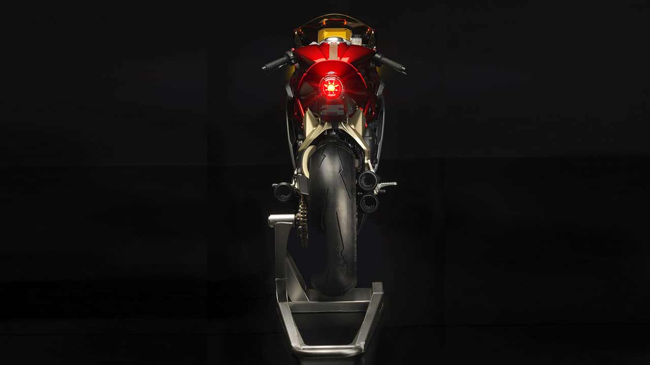 Σημαντικά στοιχεία του σχεδιασμού της αποτελούν τα LED φώτα, ο ψηφιακός πίνακας οργάνων, οι λεπτομέρειες από ανθρακονήματα και οι δερμάτινες ζώνες στο ντεπόζιτο. Το χρώμα της είναι αποκλειστικά ερυθρόλευκο με χρυσές λεπτομέρειες στο πλαίσιο, ενώ τα φρένα είναι της Brembo.