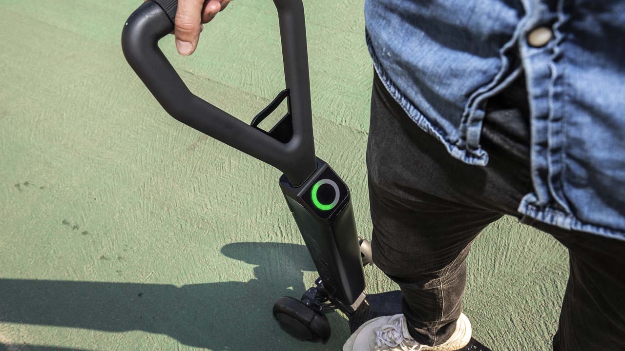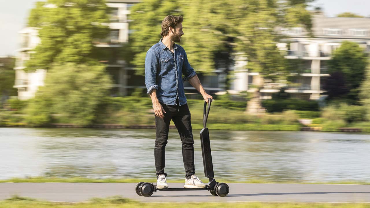 Το Audi e-tron scooter δεν είναι ένα συνηθισμένο πατίνι, καθώς μπορεί και συνδυάζει χαρακτηριστικά σανίδας skateboard και κλασσικού πατινιού. Και αυτό γιατί ο αναβάτης του μπορεί να κάθετε στο πλάι, όπως και στο skateboard ελέγχοντας με το ένα χέρι το πατίνι και στρίβοντας με την κλίση του σώματός.