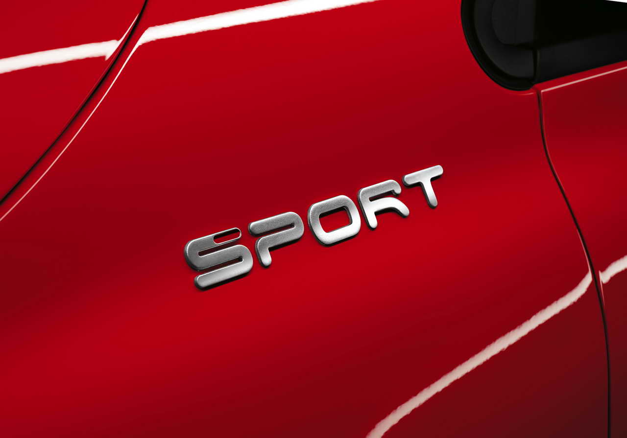 Εξωτερικά, οι προφυλακτήρες εμπρός και πίσω έχουν ειδική σχεδίαση, ενώ οι καθρέπτες, οι χειρολαβές και τα πλαϊνά μαρσπιέ, προδίδουν τον σπορ χαρακτήρα του μοντέλου. Το λογότυπο Sport στα εμπρός φτερά επιβεβαιώνει του λόγου το αληθές, ενώ οι σπορ πινελιές ολοκληρώνονται με τη διπλή χρωμιωμένη απόληξη εξάτμισης και τον διαχύτη. Αντίστοιχη η εικόνα και στο εσωτερικό. Οι εμπρός κολώνες διαθέτουν σκούρα επένδυση και το τιμόνι είναι νέο. Ο επιλογέας ταχυτήτων από αλουμίνιο και οι κόκκινες λεπτομέρειες, προσφέρουν ακόμη πιο δυναμική εικόνα. Προαιρετικά, οι αγοραστές μπορούν να επιλέξουν επένδυση του πίνακα οργάνων και του τιμονιού με Alcantara.