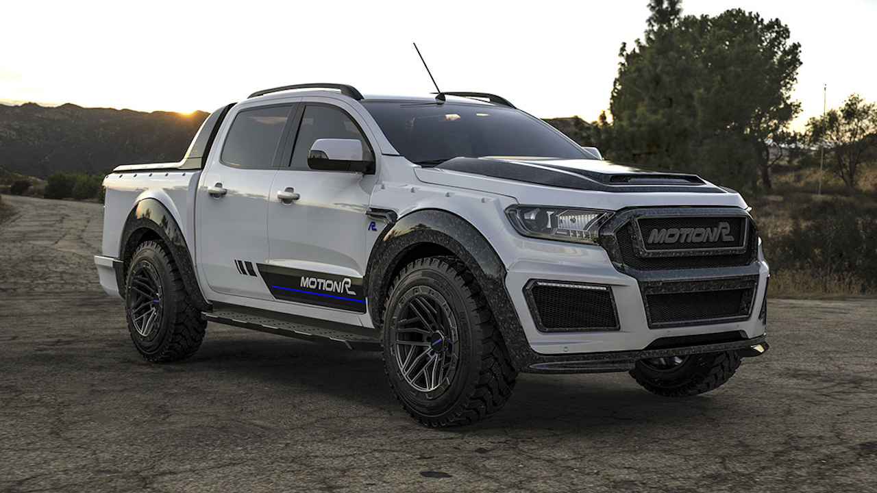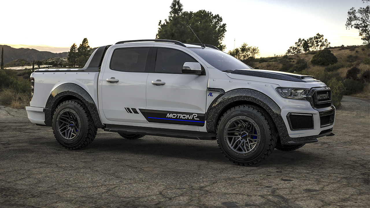 Η βρετανική MotionR Design που εξειδικεύεται στα μοντέλα της Ford και ακόμη περισσότερο στα επαγγελματικά μοντέλα της εταιρίας, παρουσίασε τη δική της πρόταση όπου τα ανθρακονήματα κυριαρχούν και δίνουν μια διαφορετική εικόνα εντυπωσιασμού στο Ranger.