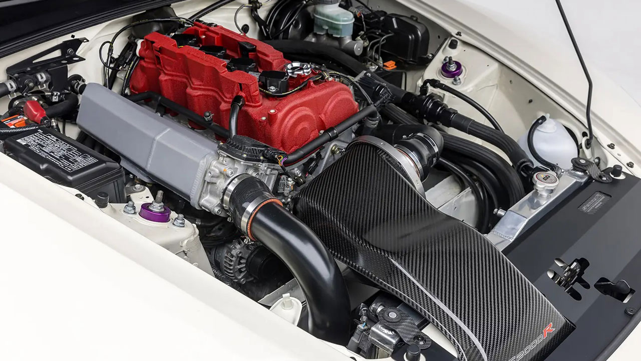 Το restomod μοντέλο διατηρεί την κίνηση στον πίσω άξονα και το εργοστασιακό κιβώτιο, αλλά κάτω από το καπό βρίσκεται πλέον το σύγχρονο, turbo μοτέρ του Honda Civic Type R. Βέβαια, έχουν γίνει κάποιες αναβαθμίσεις, όπως για παράδειγμα η carbon εισαγωγή της Mugen που μπορείτε να δείτε και στην εικόνα, η νέα πολλαπλή εισαγωγής και το σύστημα εξάτμισης από τιτάνιο. Αξιοσημείωτη είναι και η ύπαρξη διαφορικού περιορισμένης ολίσθησης της OS Giken.