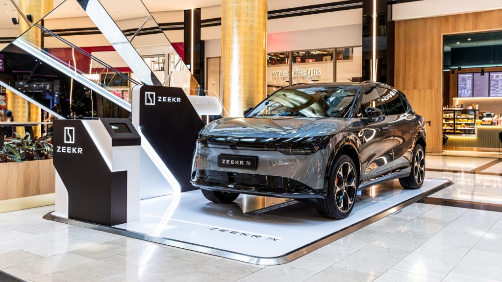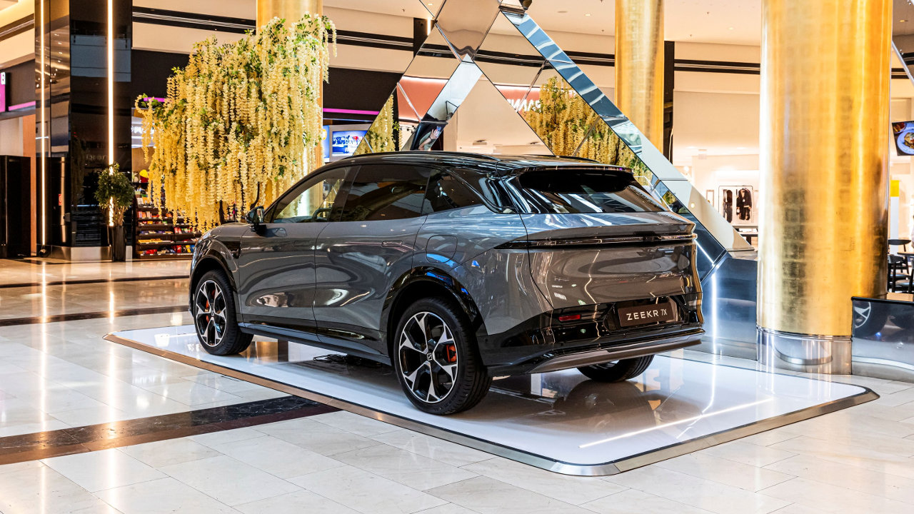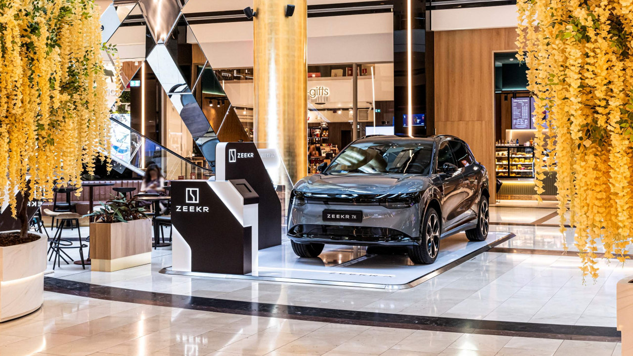 Οι επισκέπτες του Golden Hall, μέσω ενός ειδικά διαμορφωμένου pop-up εκθεσιακού χώρου, έχουν την ευκαιρία να δουν από κοντά το ολοκαίνουργιο Zeekr 7X.
