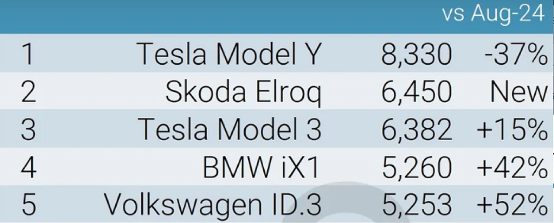 Πιο συγκεκριμένα, το νέο SUV της Skoda πέτυχε 6.450 ταξινομήσεις, σύμφωνα με τα στοιχεία του Jato Dynamics. Αυτή η επίδοση ήταν αρκετή για να το φέρει στη δεύτερη θέση των αμιγώς ηλεκτρικών μοντέλων. Η πρωτιά ανήκει στο Tesla Model Y των 8.330 ταξινομήσεων, ενώ η τρίτη θέση στο Model 3 των 6.382 ταξινομήσεων. Όπως θα δείτε και στον πίνακα που ακολουθεί, το νέο Skoda Elroq πέρασε και άλλα δημοφιλή μοντέλα, όπως για παράδειγμα την BMW iX1 και το VW ID.3.